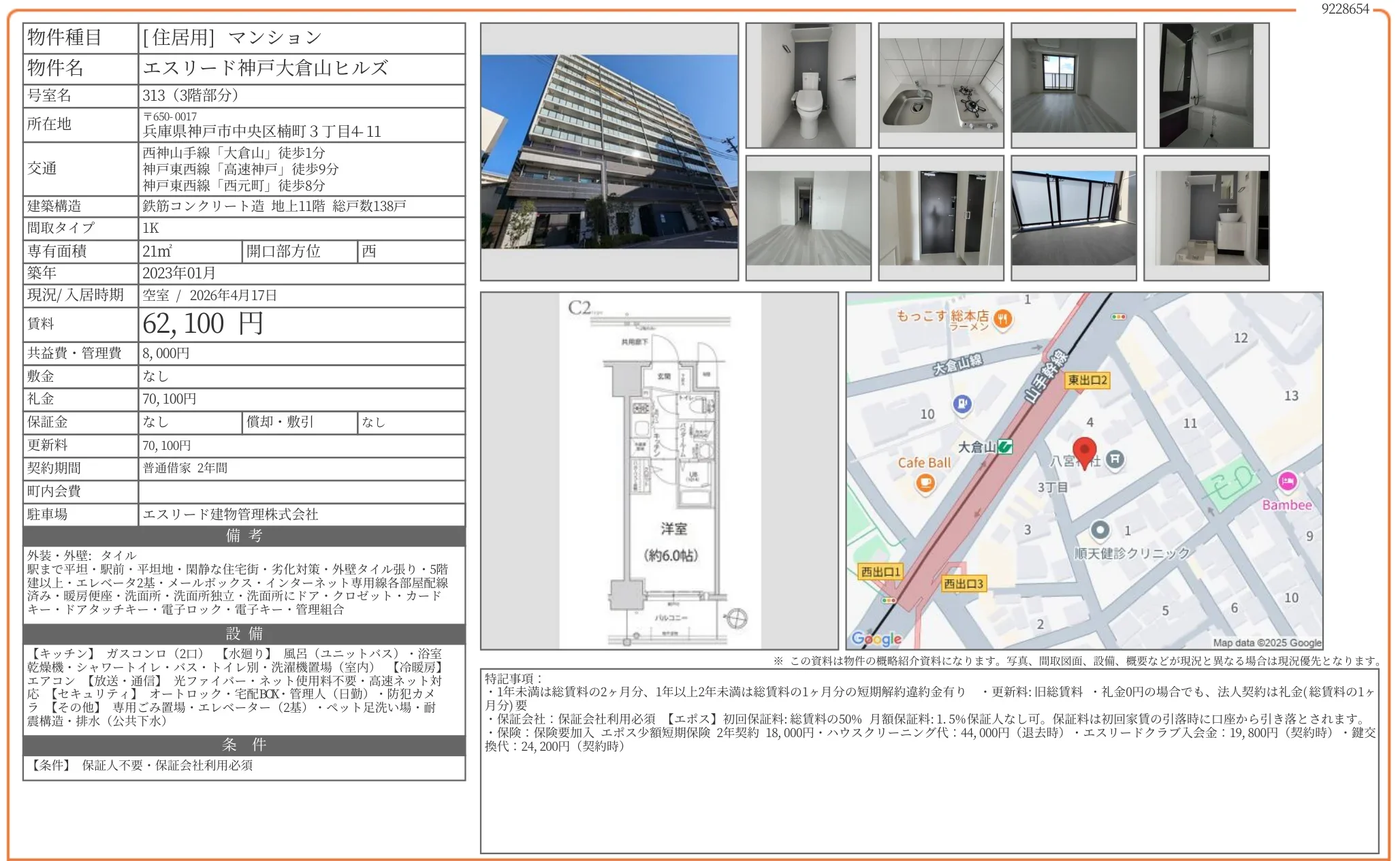 物件名エスリード神戸大倉山ヒルズ 313