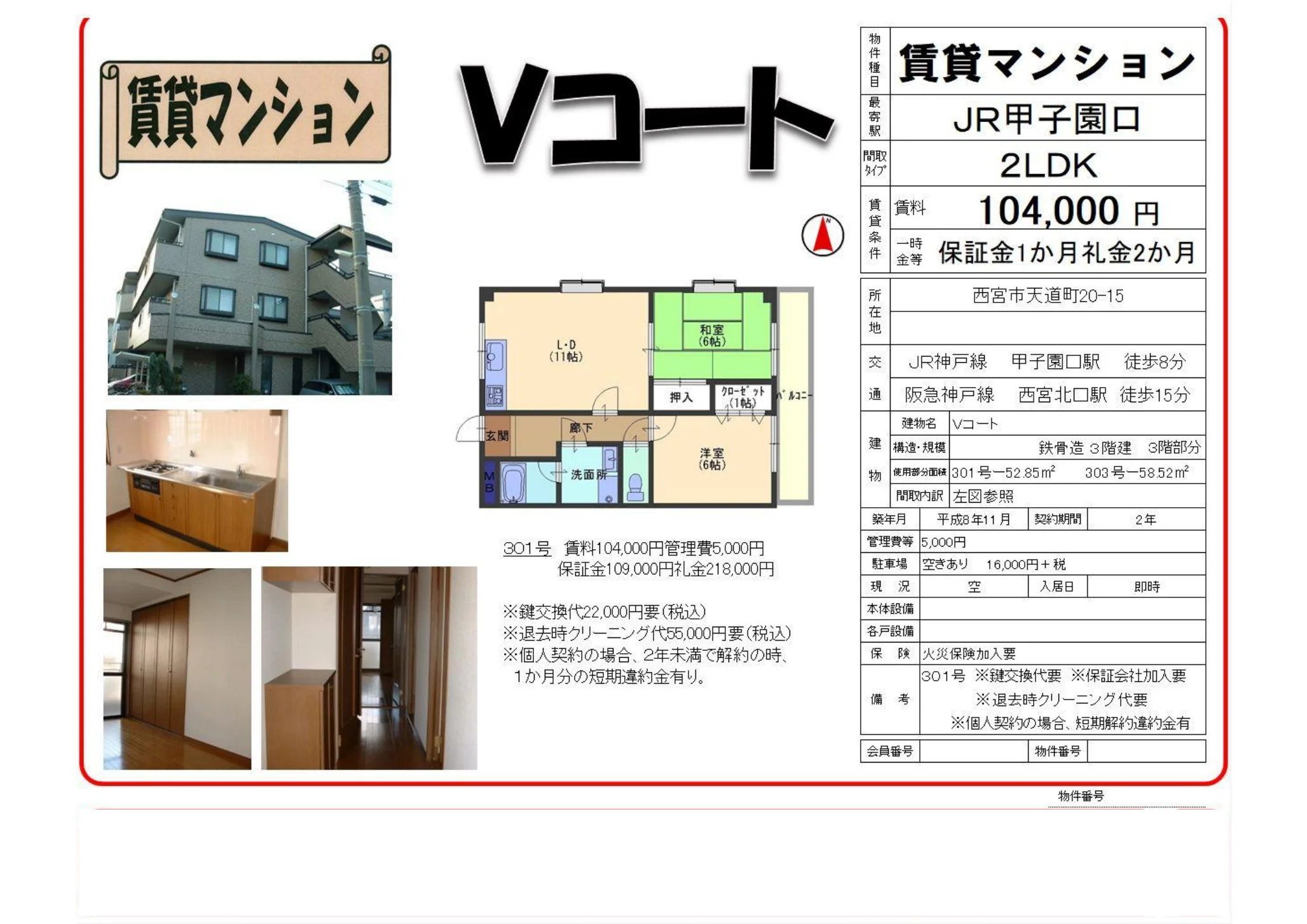 | 物件名 | Vコート 301号 |