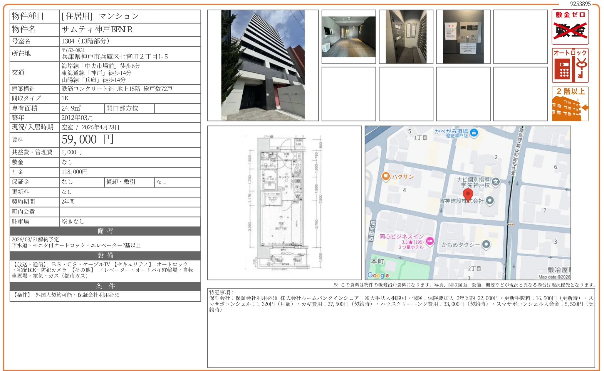 | アクセス | 中央市場前 (徒歩6分) 神戸 (徒歩14分) 兵庫 (徒歩14分) |