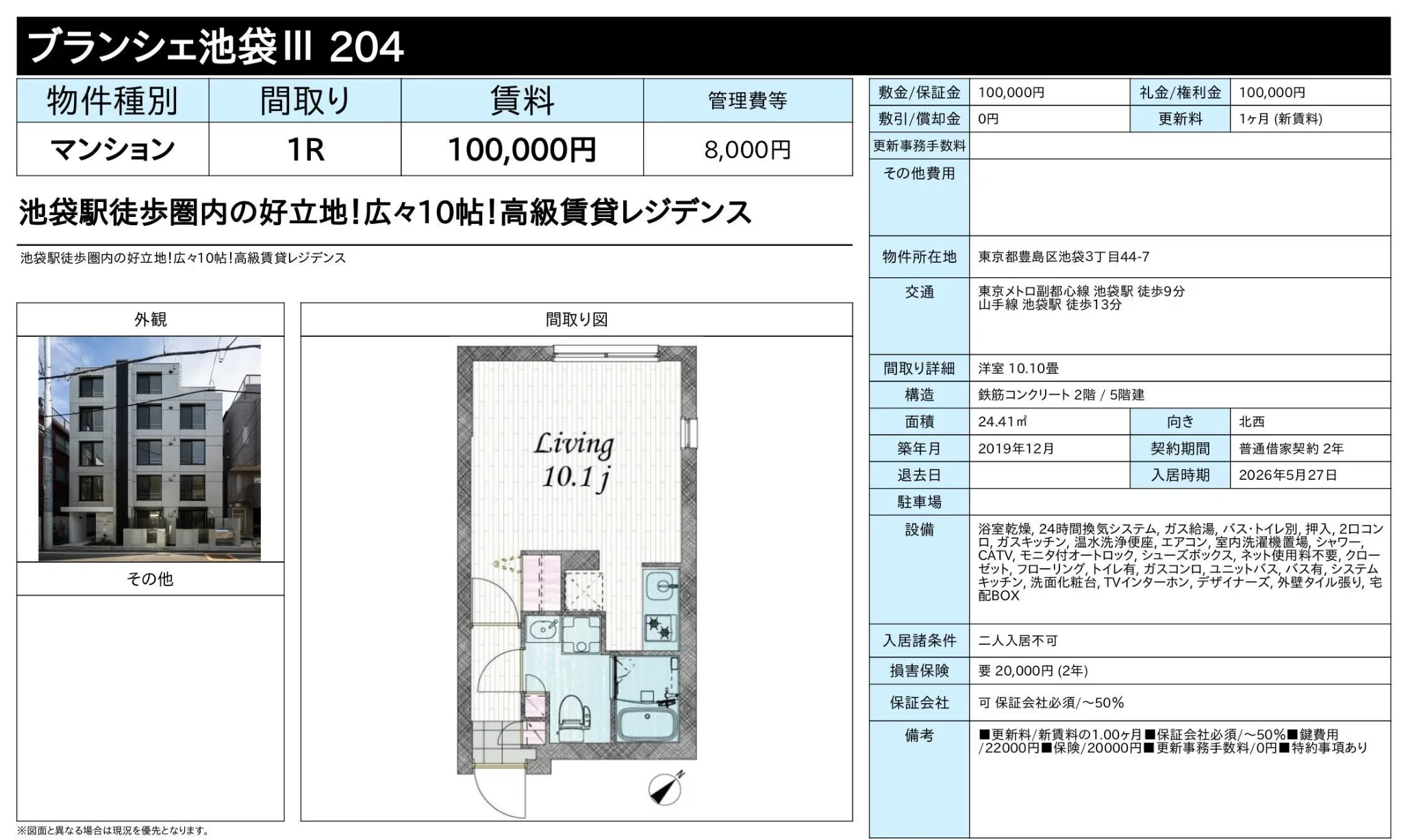 | 建物名 | ブランシェ池袋Ⅲ |