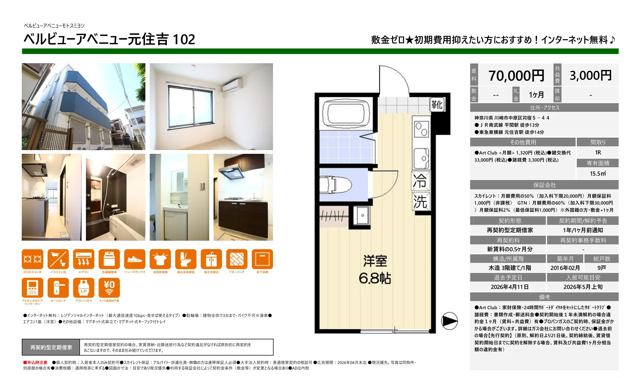 | アクセス | 平間駅 (徒歩13分) 元住吉駅 (徒歩14分) |