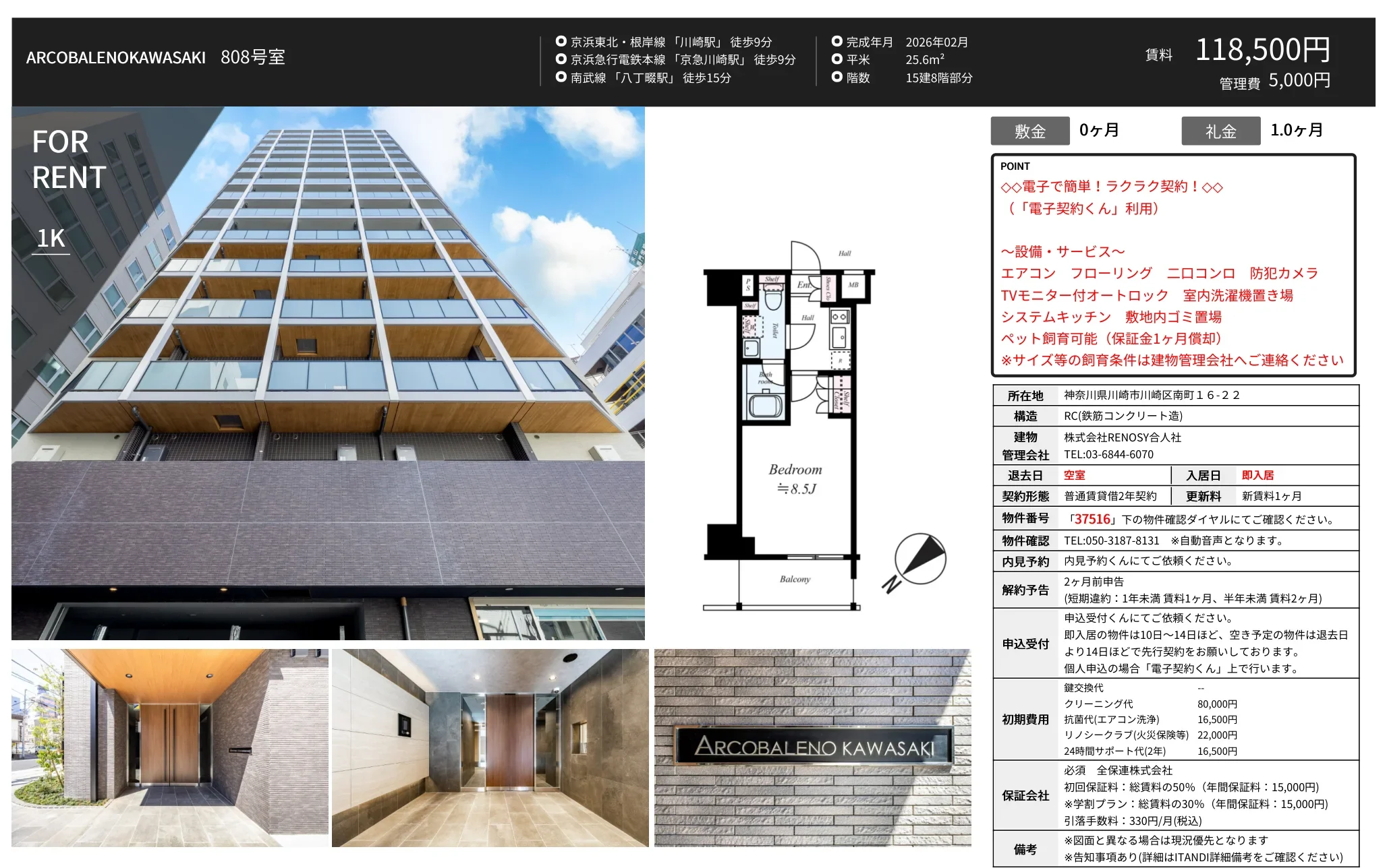 | 物件名 | ARCOBALENO KAWASAKI 808号 |