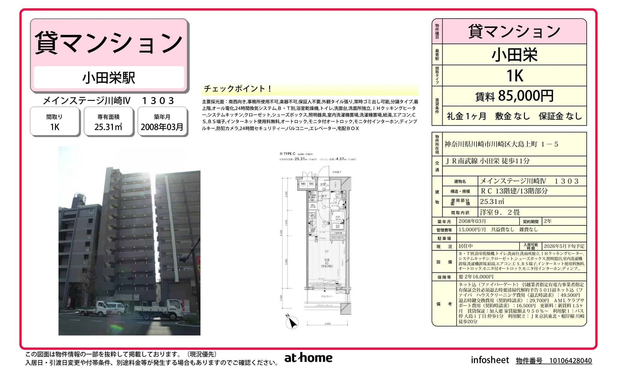 | 物件名 | メインステージ川崎ⅣV 1303 1303 |