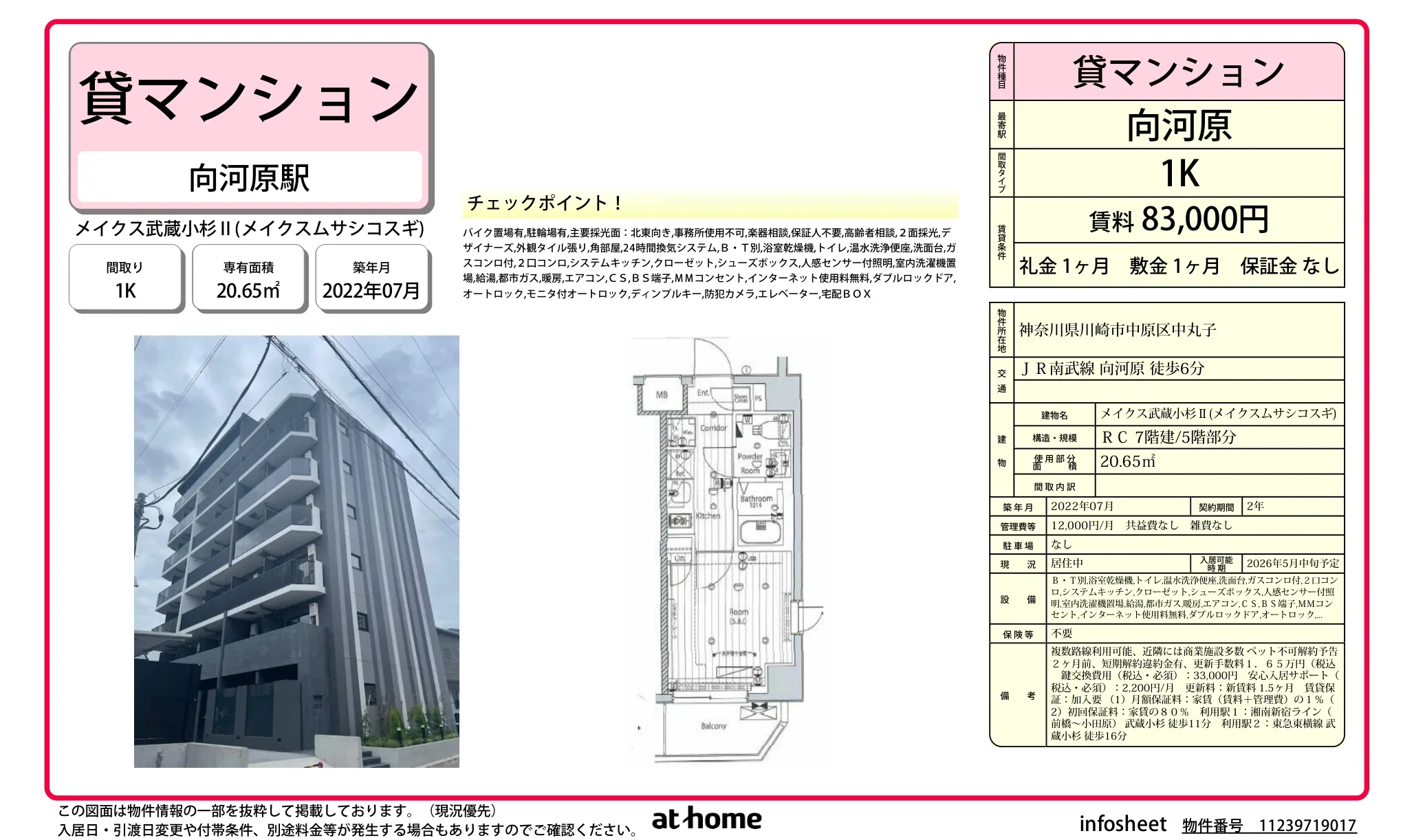 | 物件名 | メイクス武蔵小杉Ⅱ 1K |