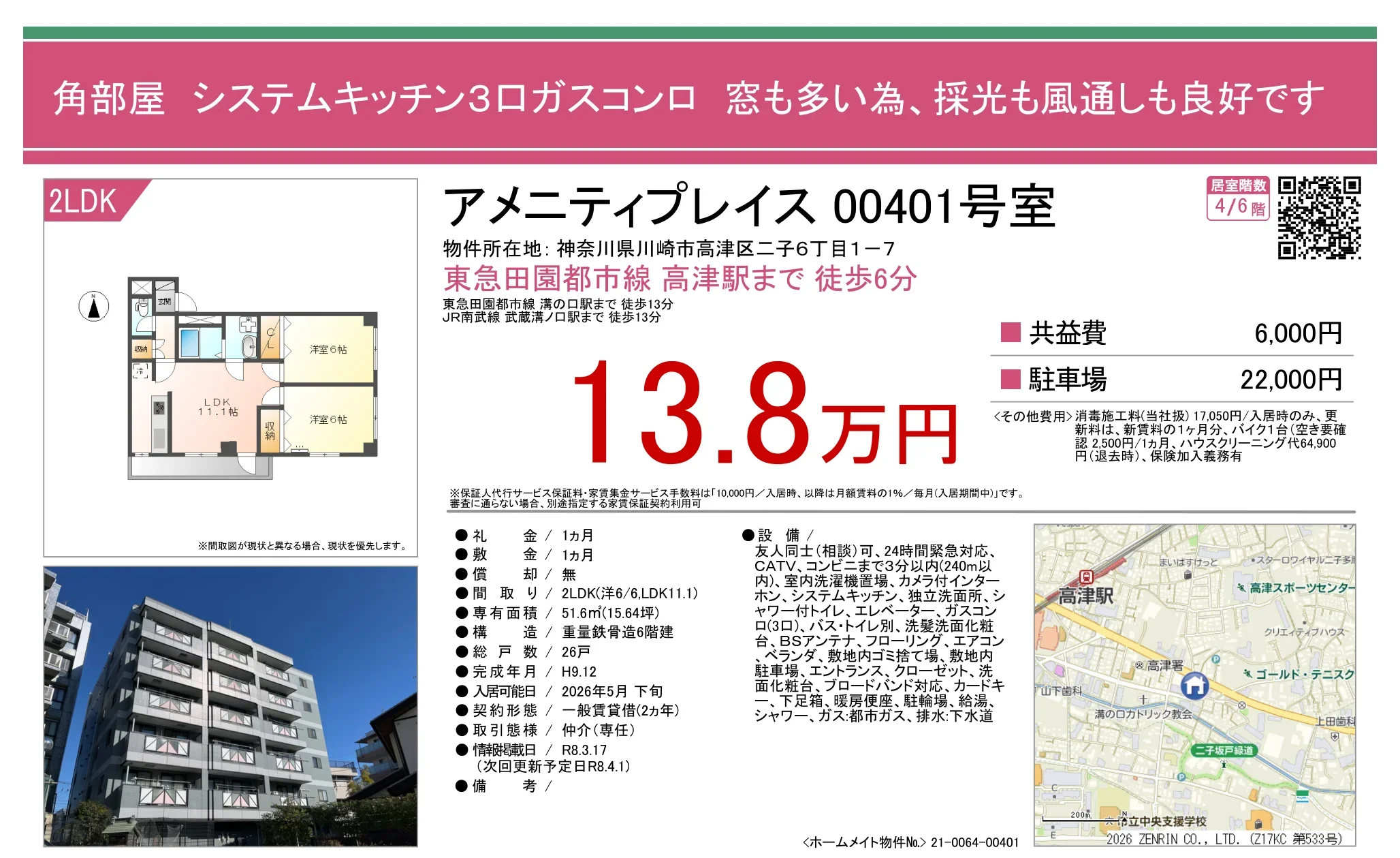 | アクセス | 高津 (徒歩6分) 溝の口 (徒歩13分) |