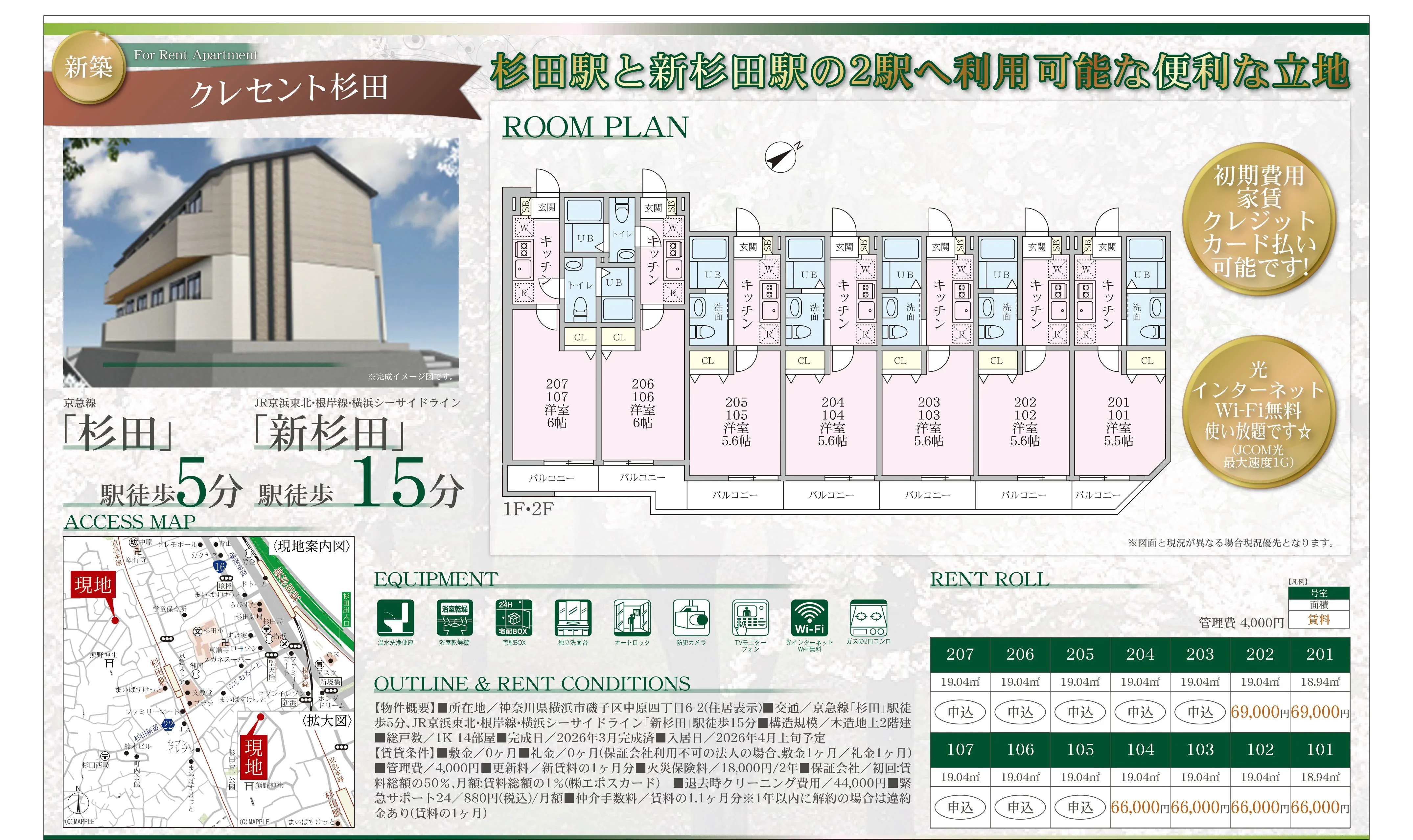 | 物件名 | クレセント杉田 107号 |