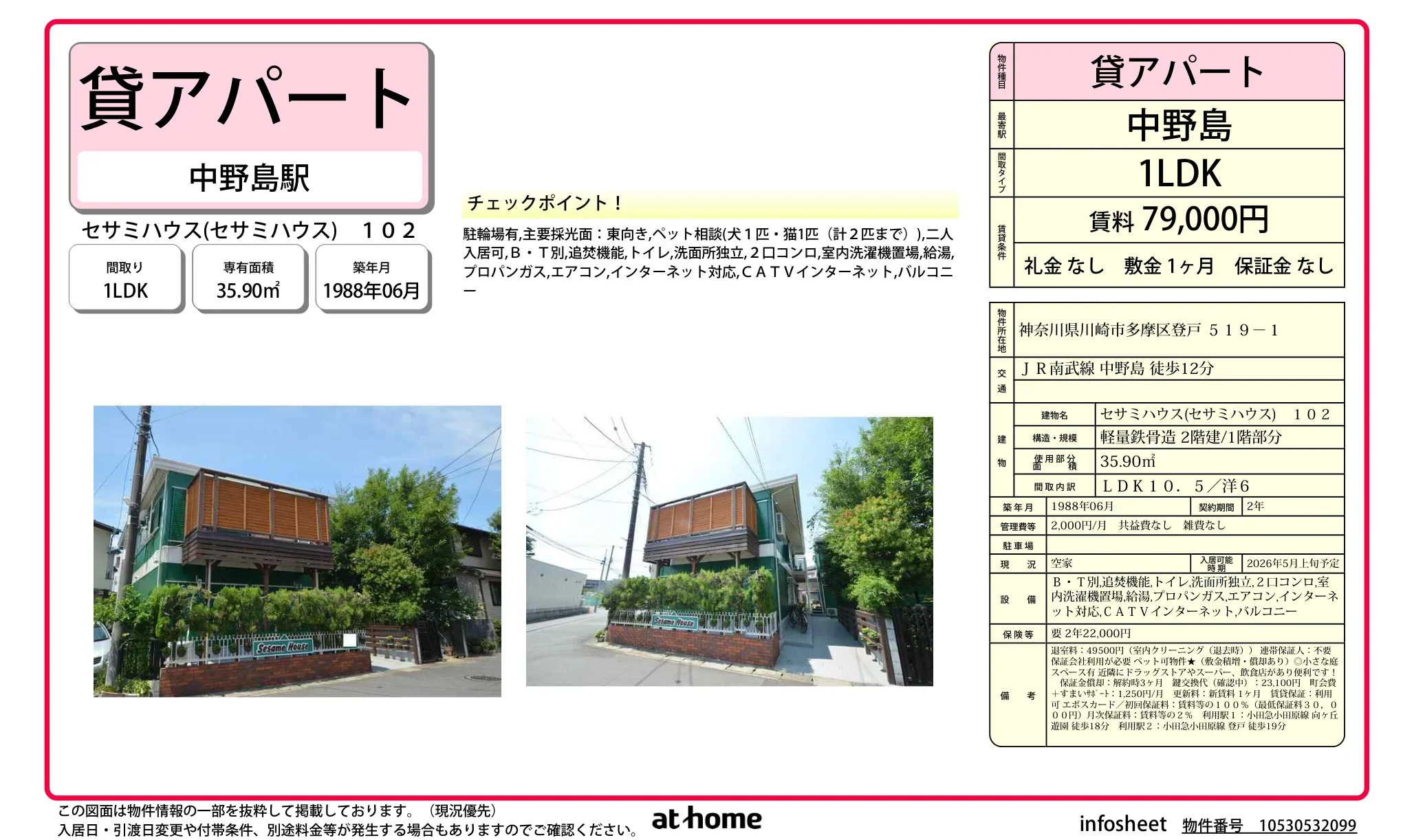| アクセス | 中野島 (徒歩12分) 向ヶ丘遊園 (徒歩18分) 登戸 (徒歩19分) |