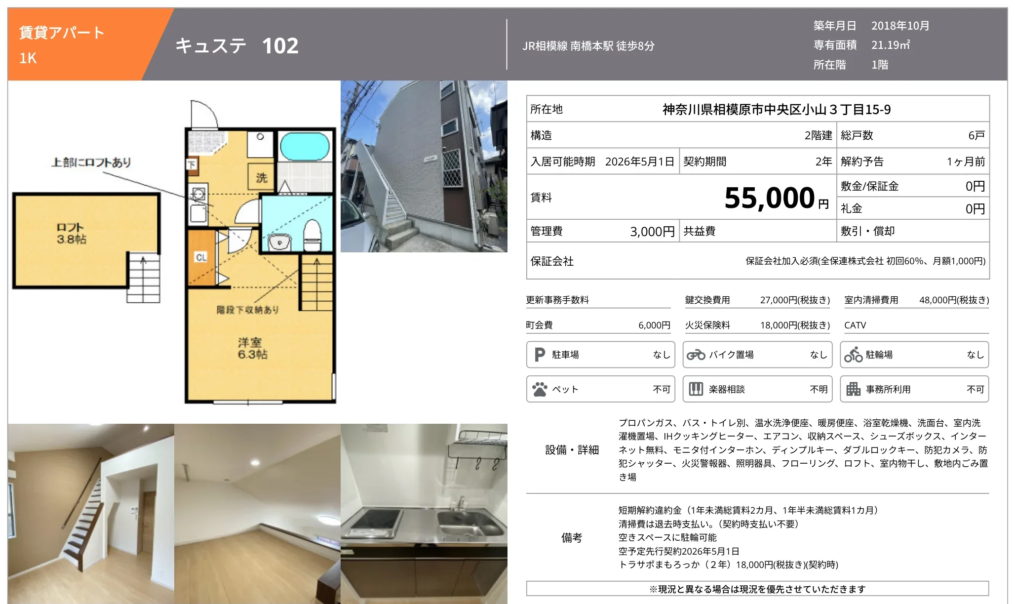 | 引渡時期 | 空予定先行契約2026年5月1日 |