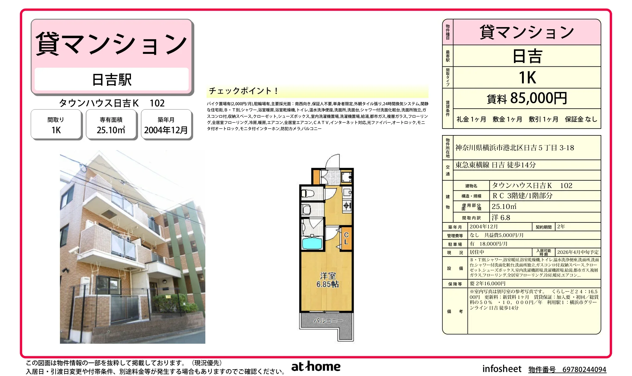 | 物件名 | タウンハウス日吉K 102 102号 |
