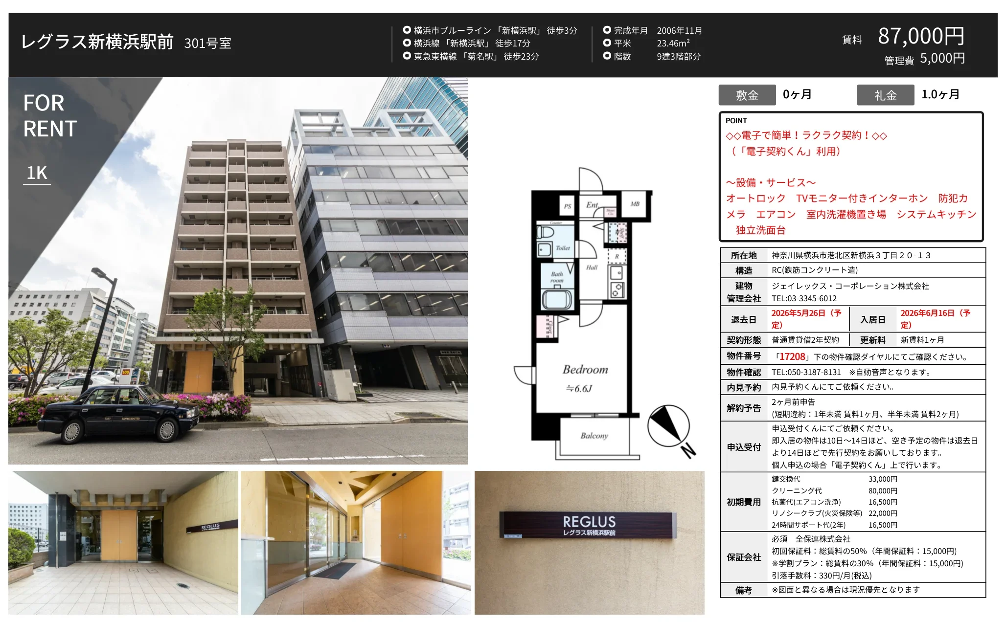| 物件名 | レグラス新横浜駅前 301号室 301号 |