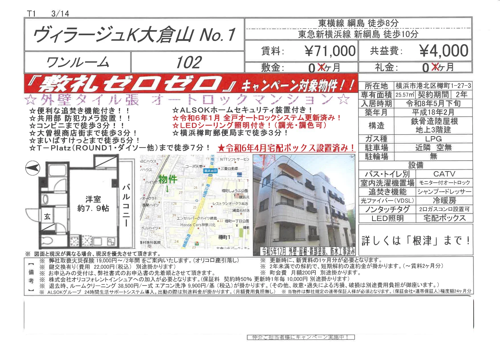 | 物件名 | ヴィラージュK大倉山 No.1 102 |