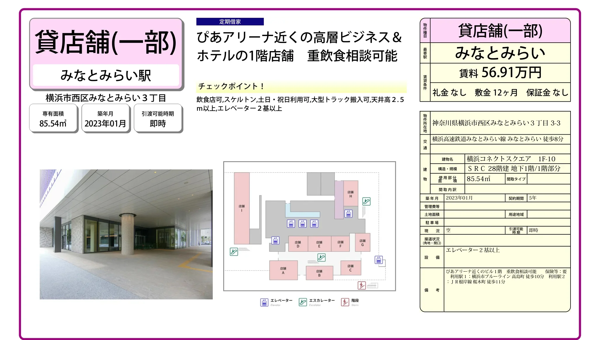 | 物件名 | 横浜コネクトスクエア 1F-10 |