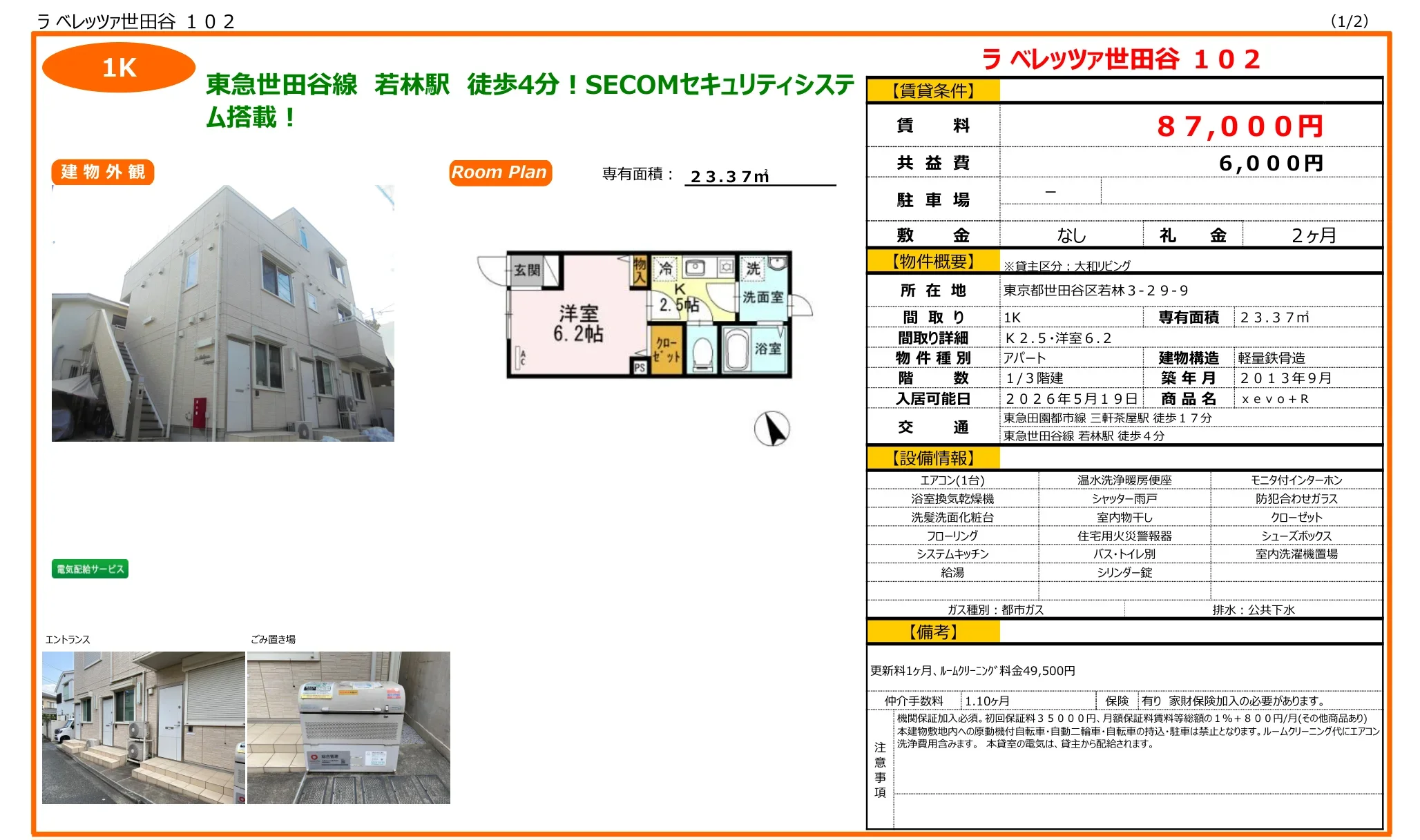 | アクセス | 三軒茶屋駅 (徒歩17分) 若林駅 (徒歩4分) |