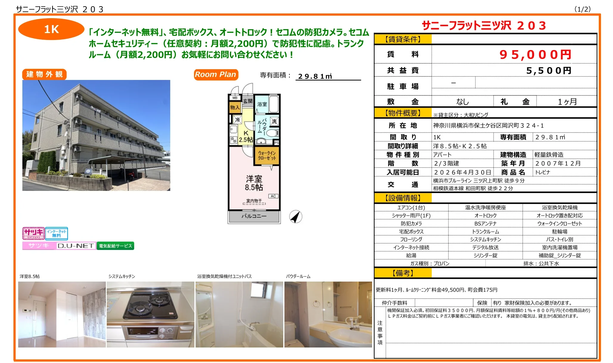 9.5万円 / 月