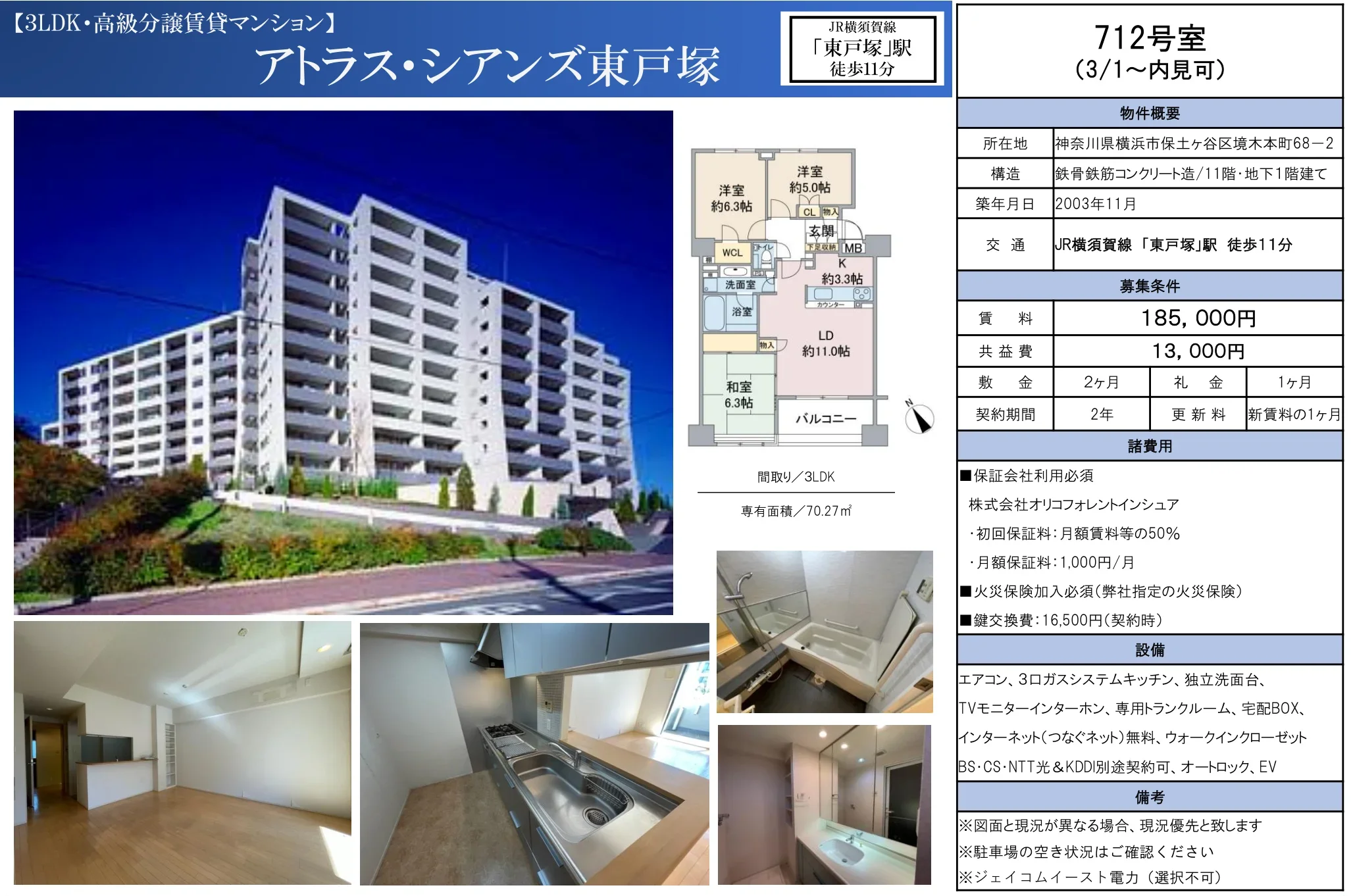 | 物件名 | アトラス・シアンズ東戸塚 712号 |