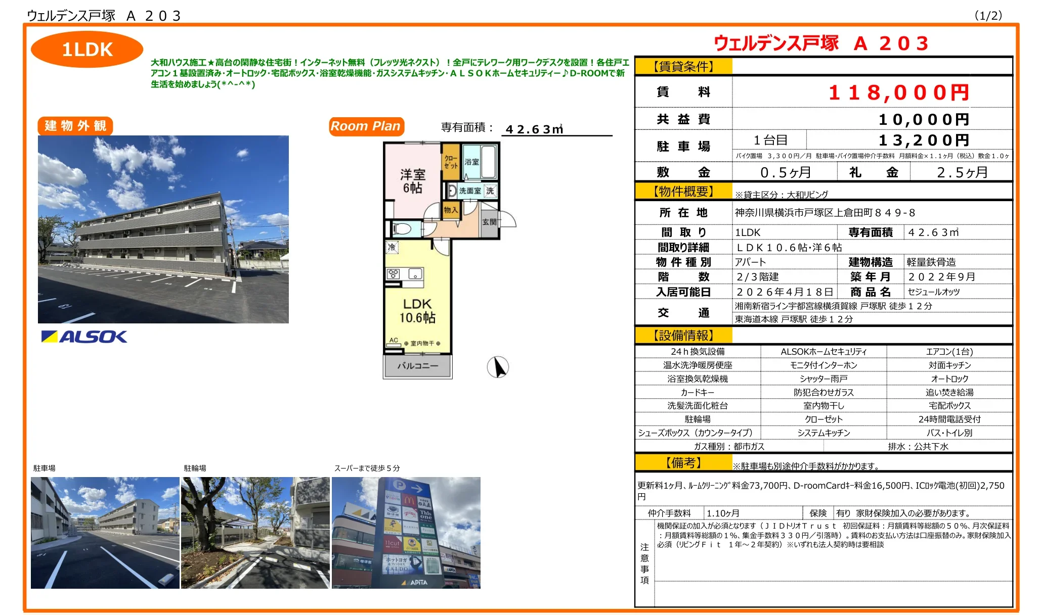 | 物件名 | ウェルデンス戸塚 A203 203号 |