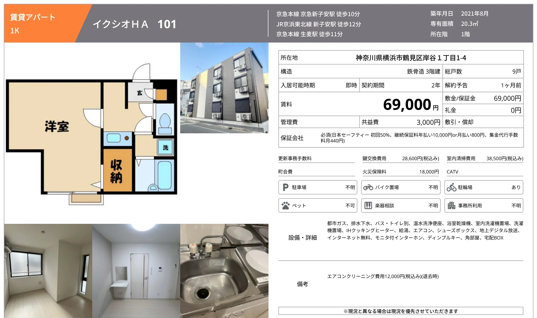 | アクセス | 京急新子安駅 (徒歩10分) 新子安駅 (徒歩12分) 生麦駅 (徒歩11分) |