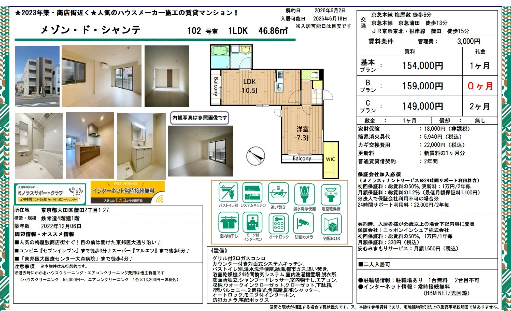 | アクセス | 梅屋敷 (徒歩6分) 京急蒲田 (徒歩13分) 蒲田 (徒歩15分) |