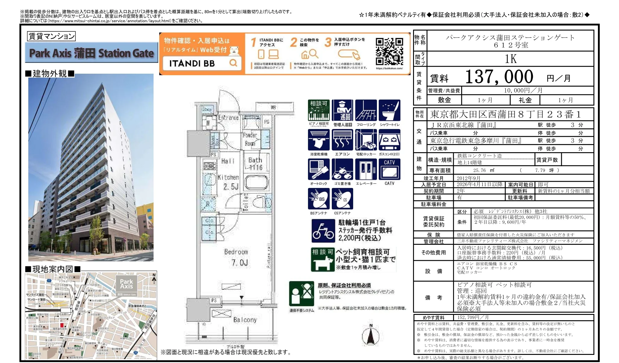 | 物件名 | パークアクシス蒲田ステーションゲート 612号 |