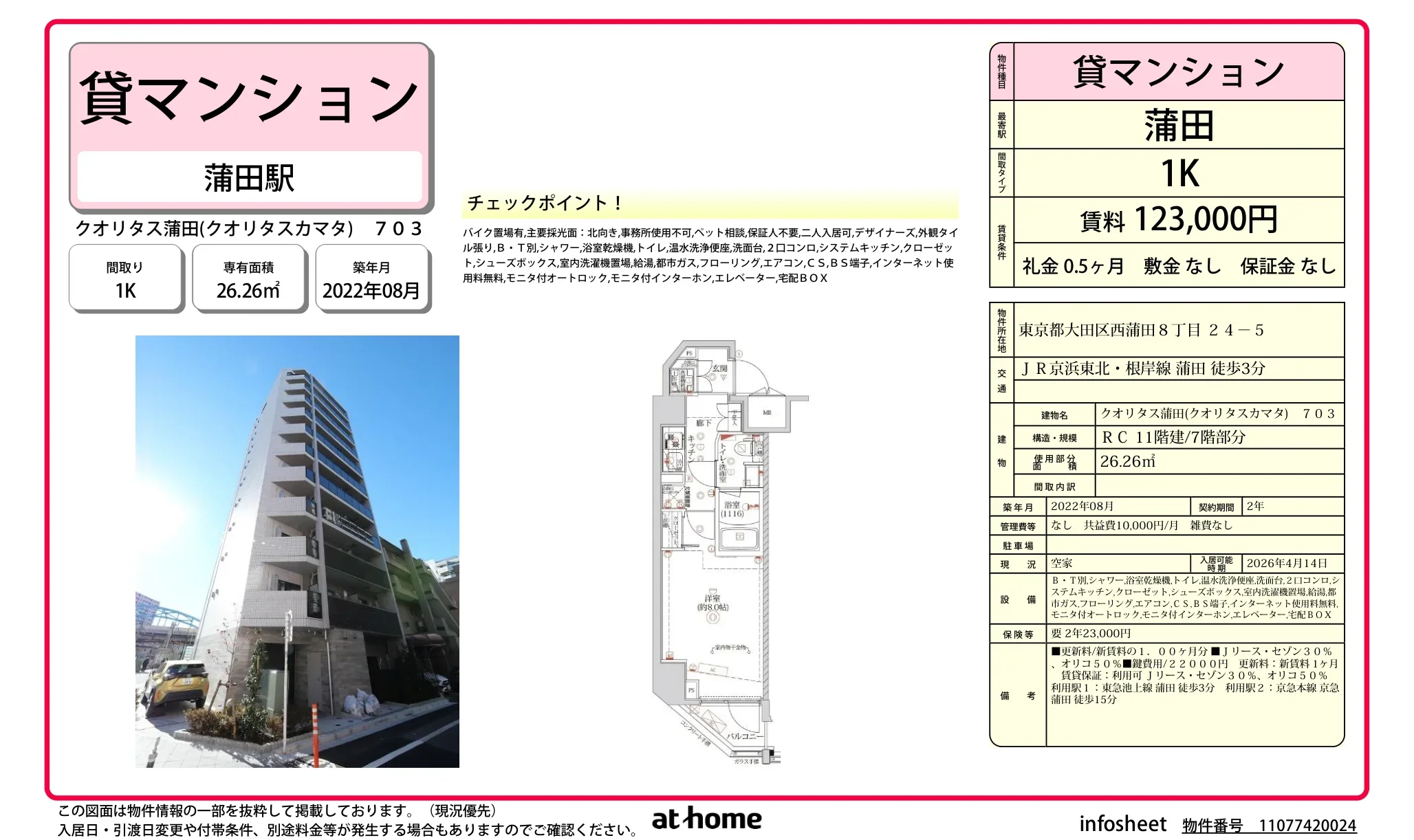 | 引渡時期 | 入居可能 2026年4月14日 |