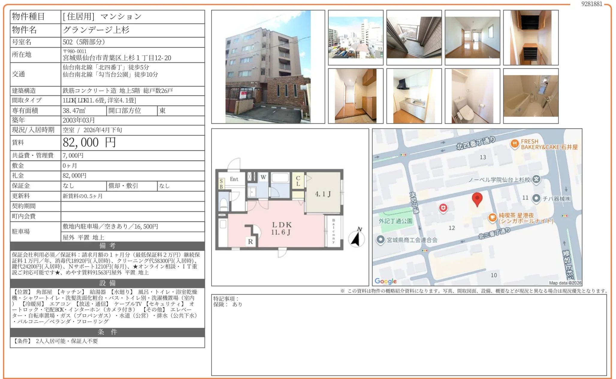 | 礼金 | 82000 |