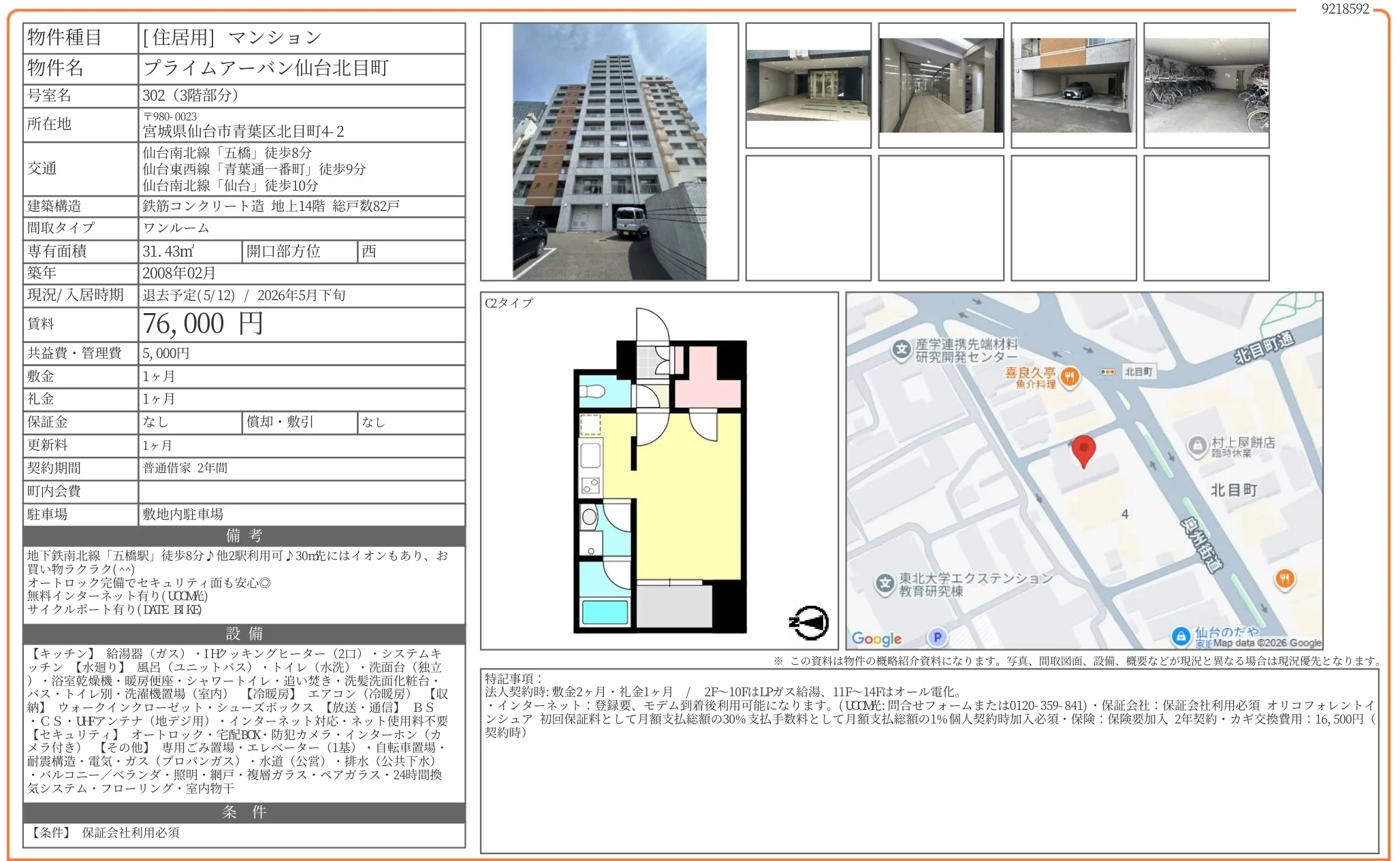 | 部屋番号 | 302号 |