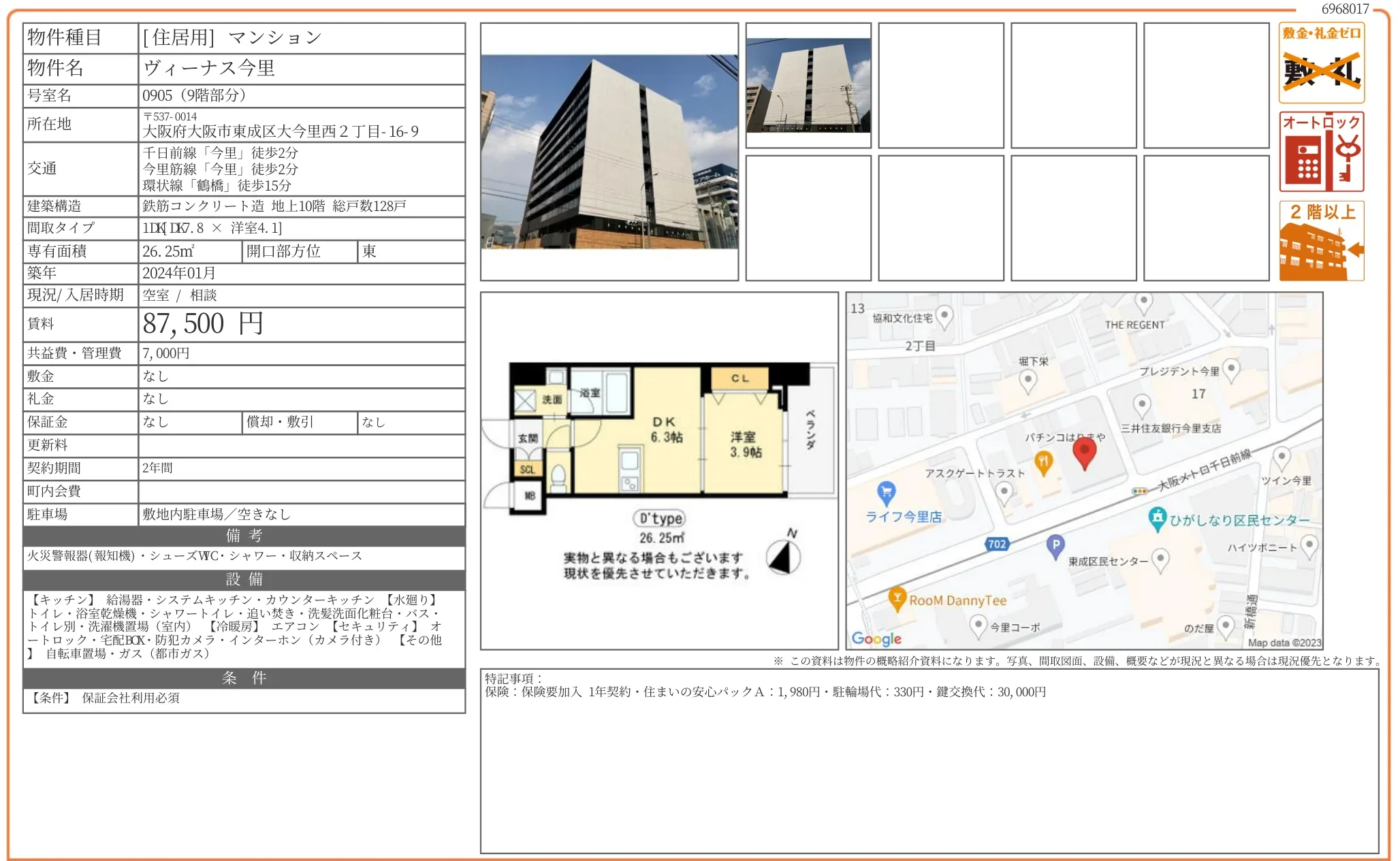 | 物件名 | ヴィーナス今里 905号 |