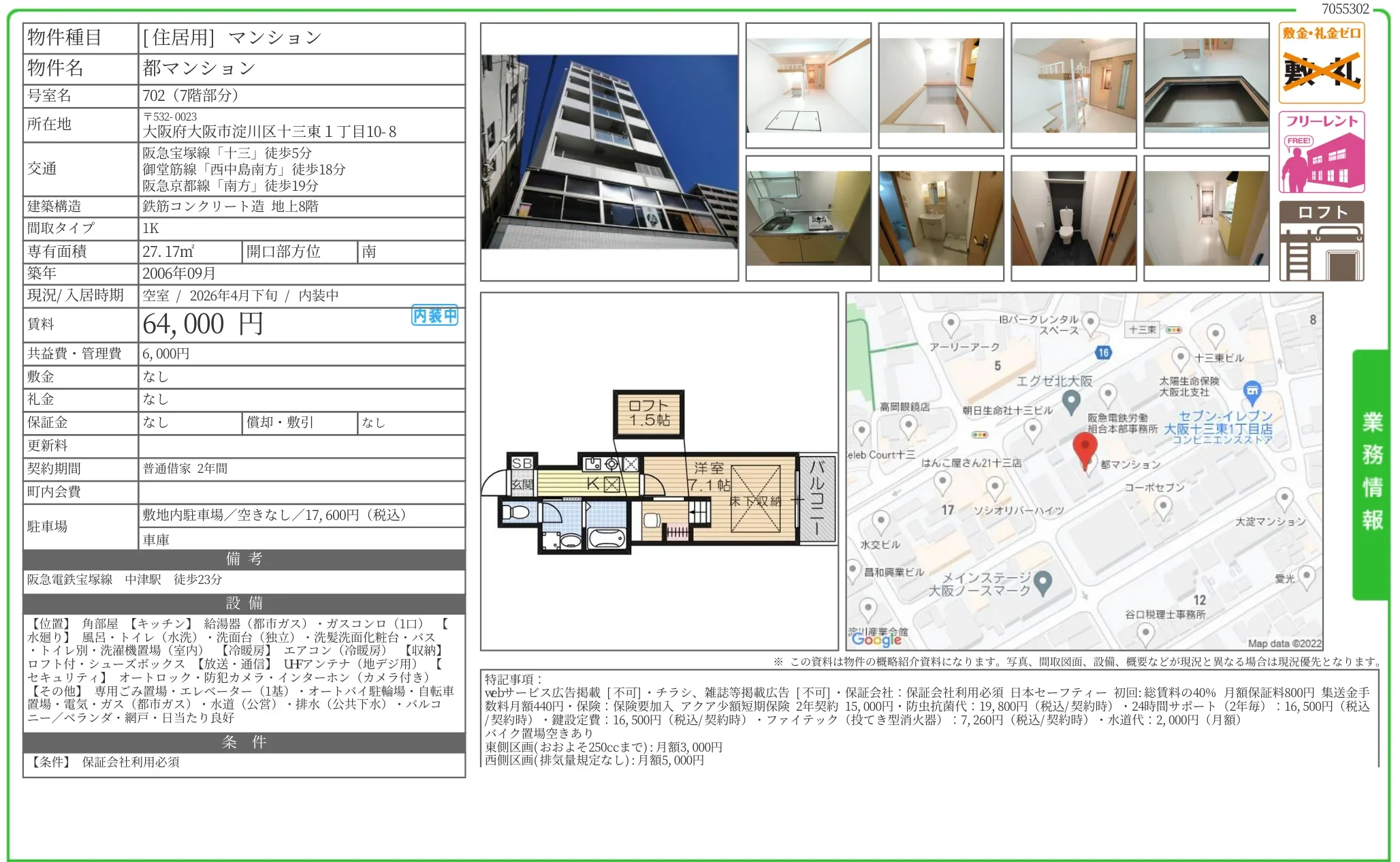 | アクセス | 十三 (徒歩5分) 西中島南方 (徒歩18分) 南方 (徒歩19分) |