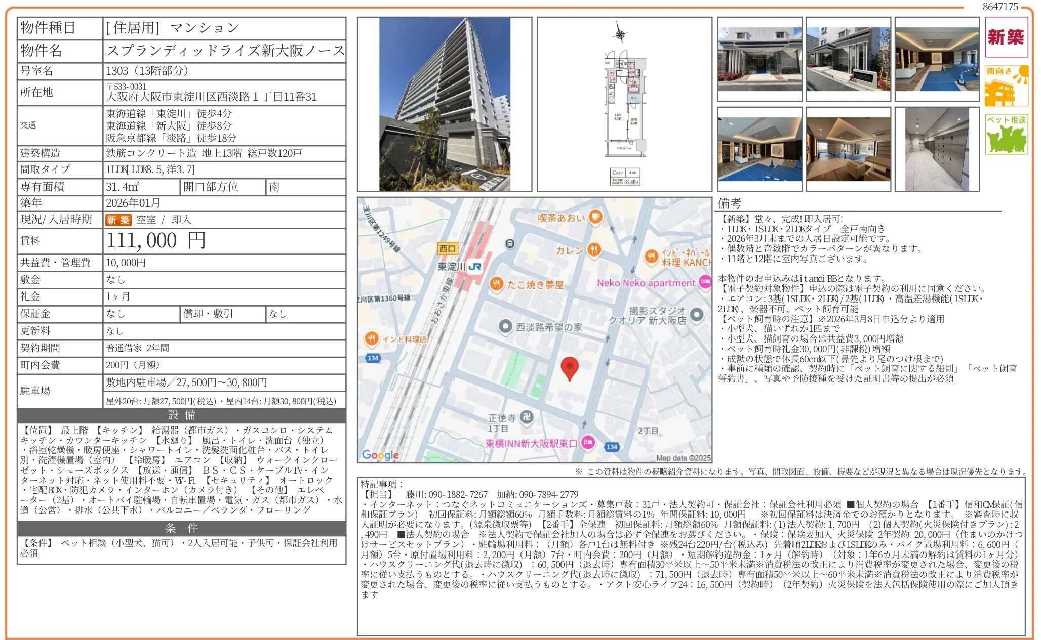 | 建物名 | スプランディッドライズ新大阪ノース |