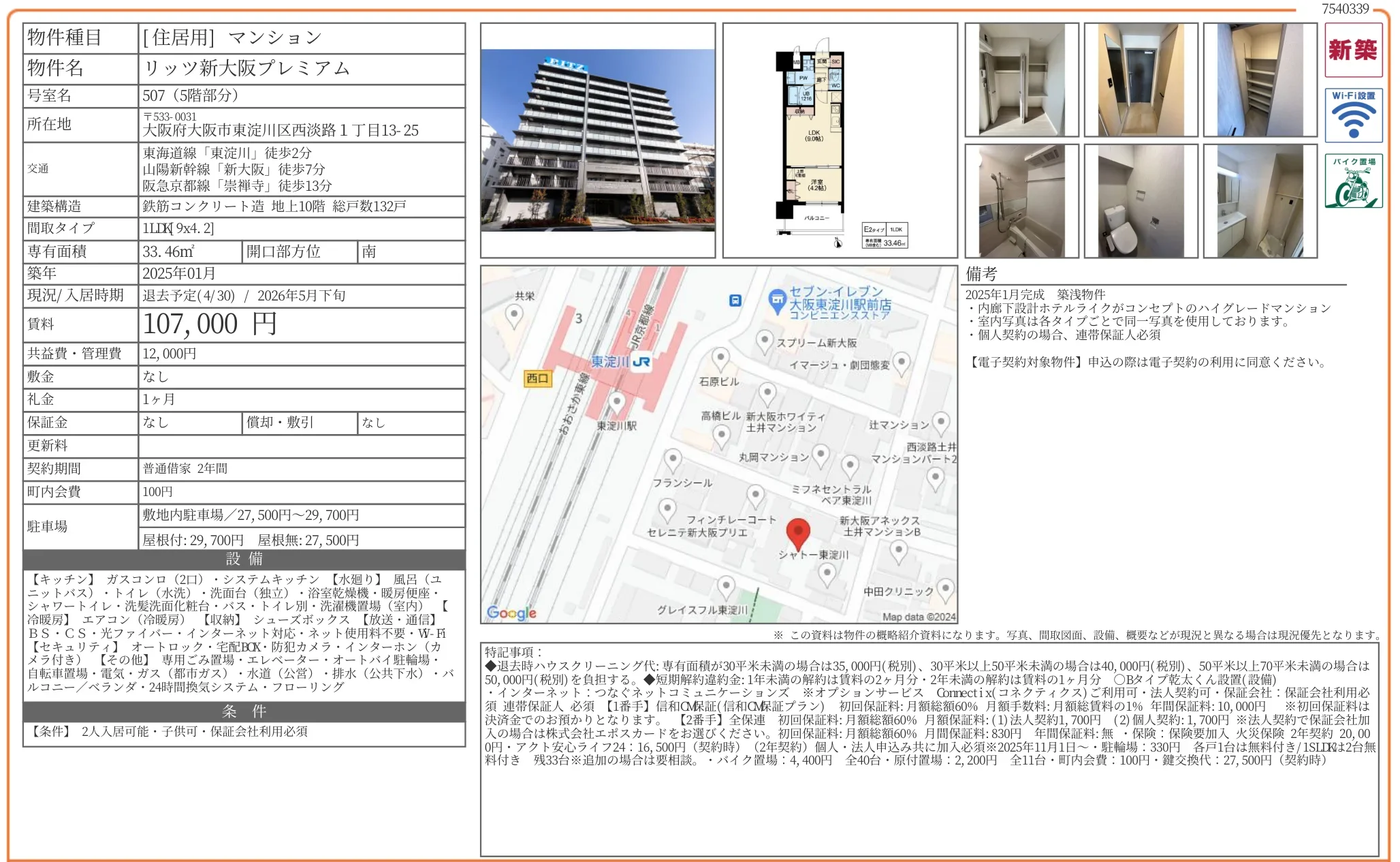 | アクセス | 東淀川 (徒歩2分) 新大阪 (徒歩7分) 崇禅寺 (徒歩13分) |