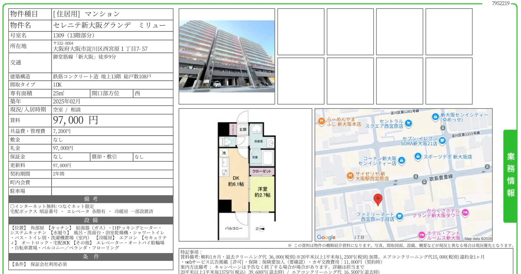 | 物件名 | セレニテ新大阪グランデ 1309 |