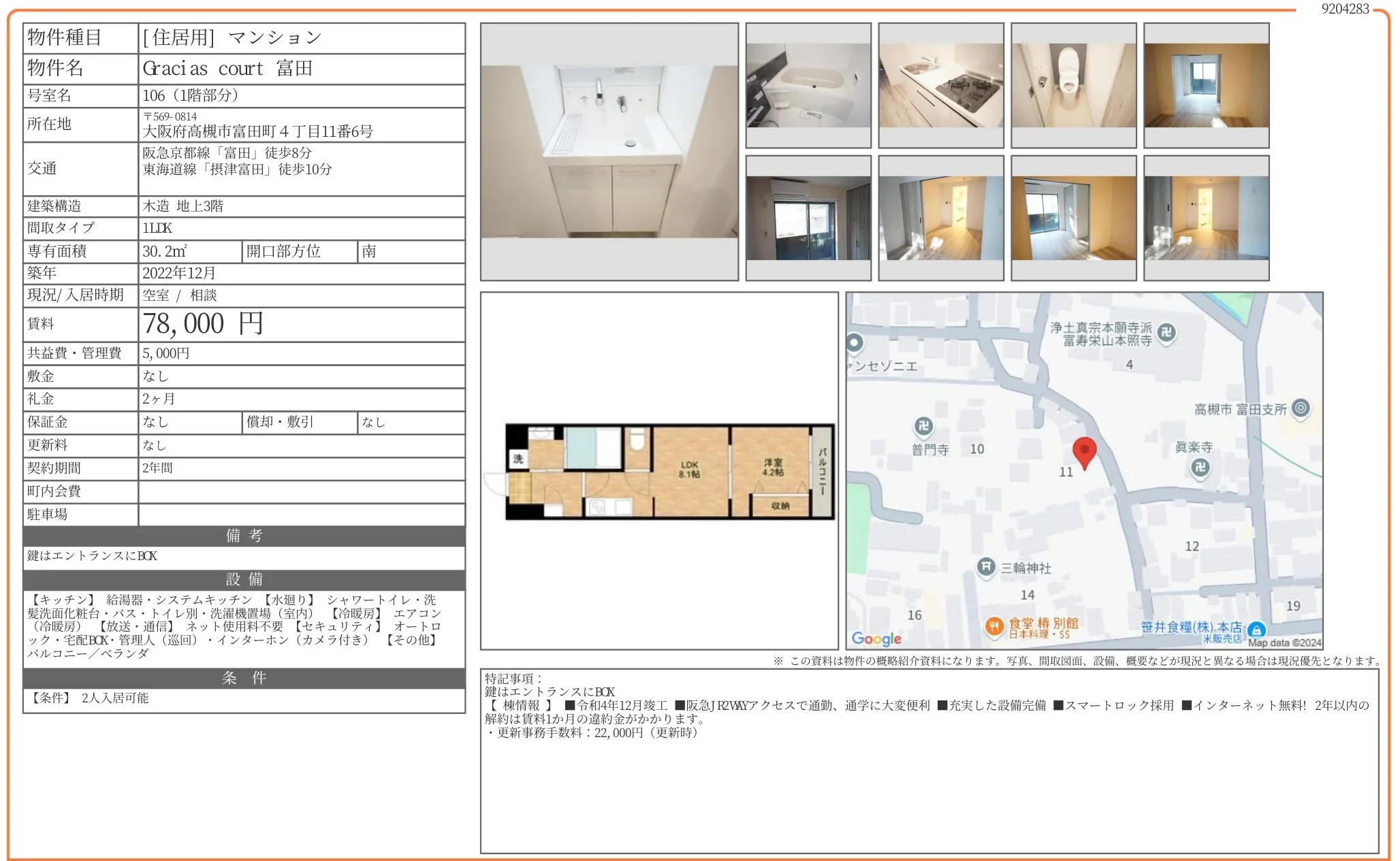 | アクセス | 富田 (徒歩8分) 摂津富田 (徒歩10分) |