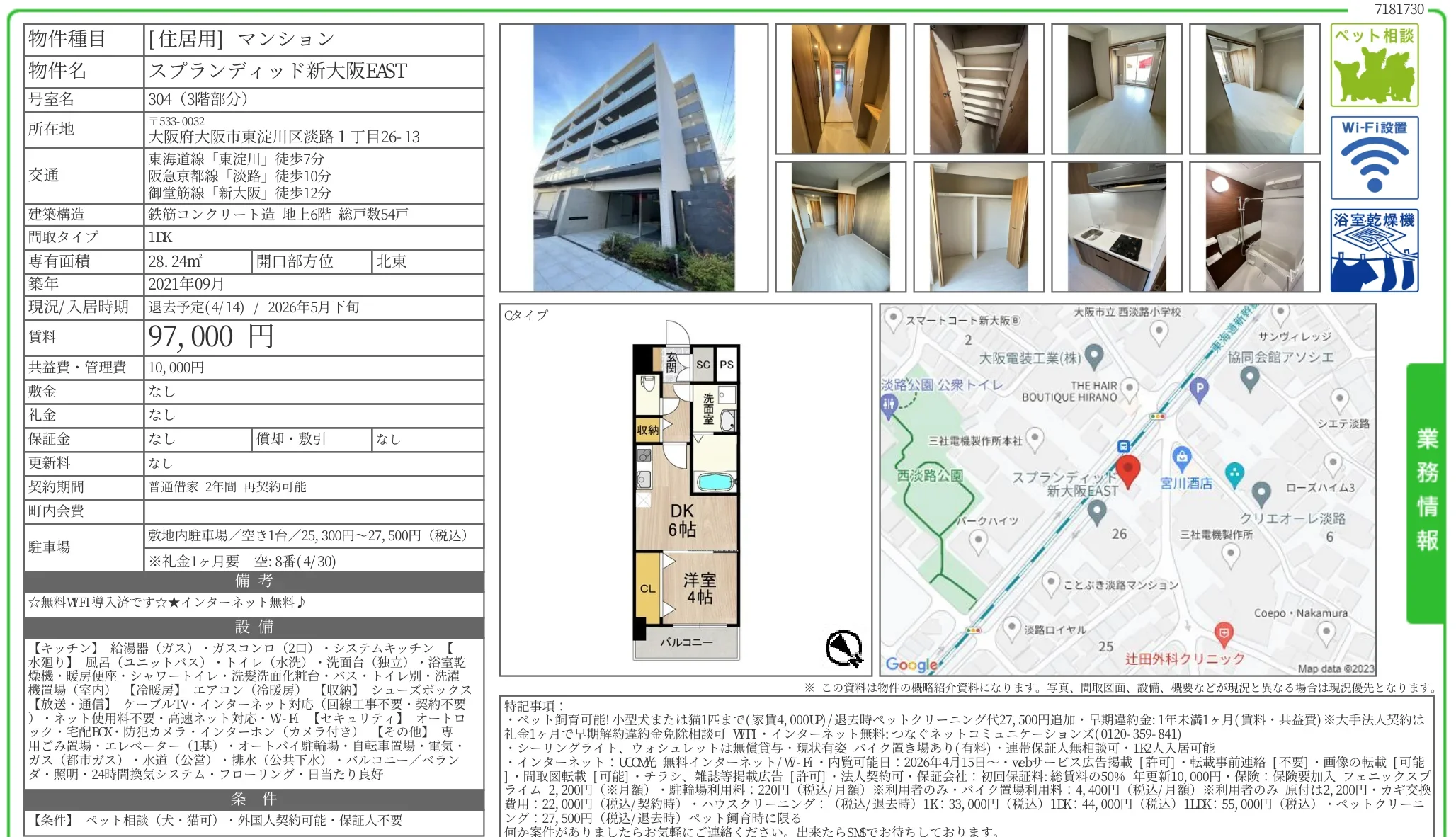 | 物件名 | スプランディッド新大阪EAST 304号 |