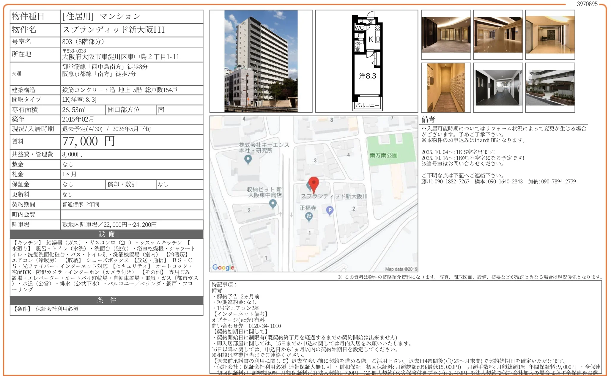 | 物件名 | スプランディッド新大阪III 803 |