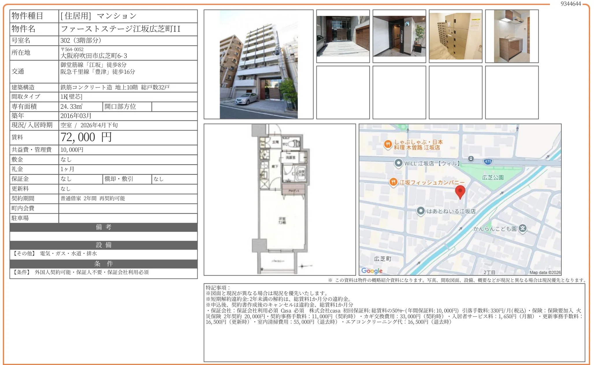 | アクセス | 江坂 (徒歩8分) 豊津 (徒歩16分) |