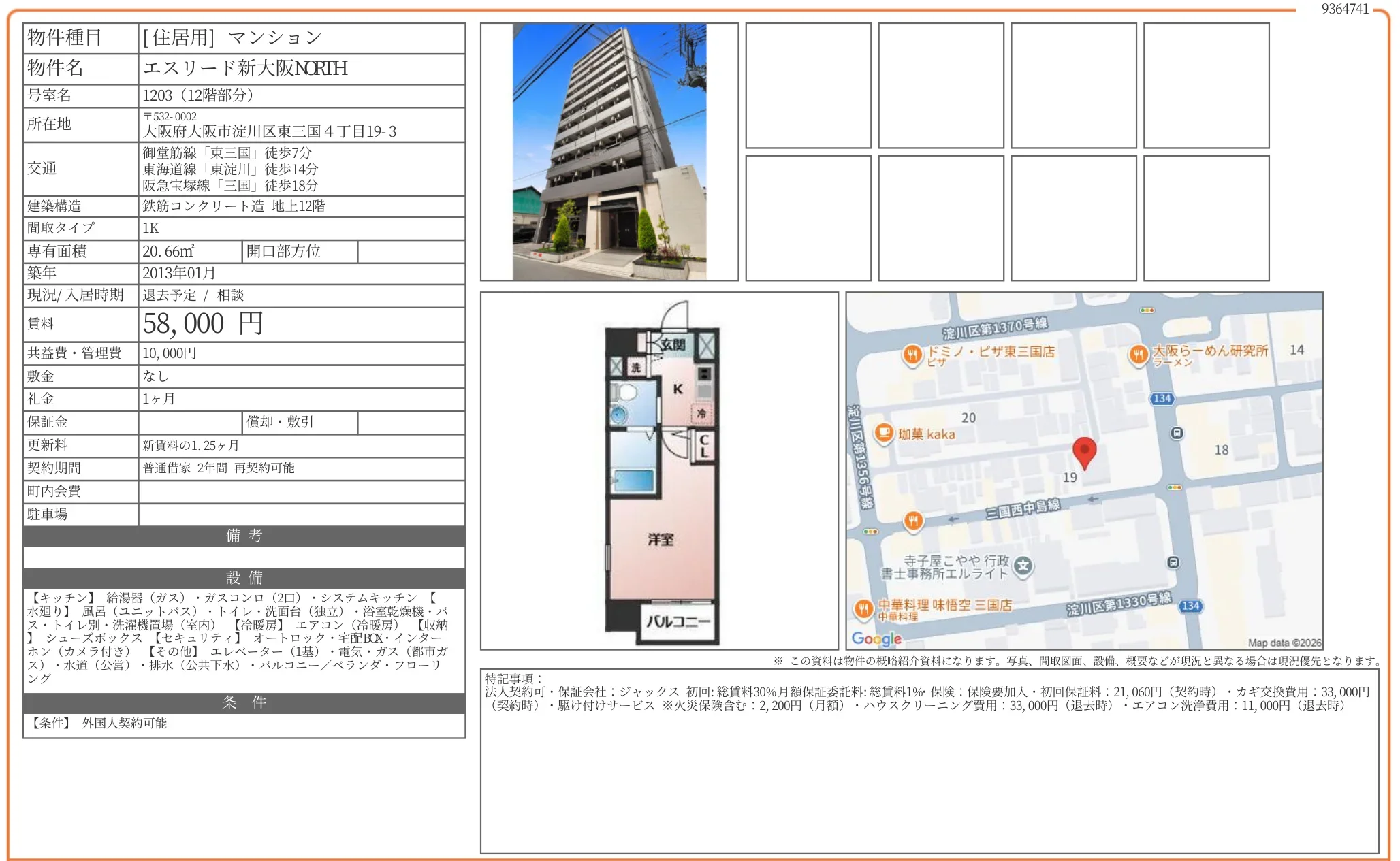 | アクセス | 東三国 (徒歩7分) 東淀川 (徒歩14分) 三国 (徒歩18分) |