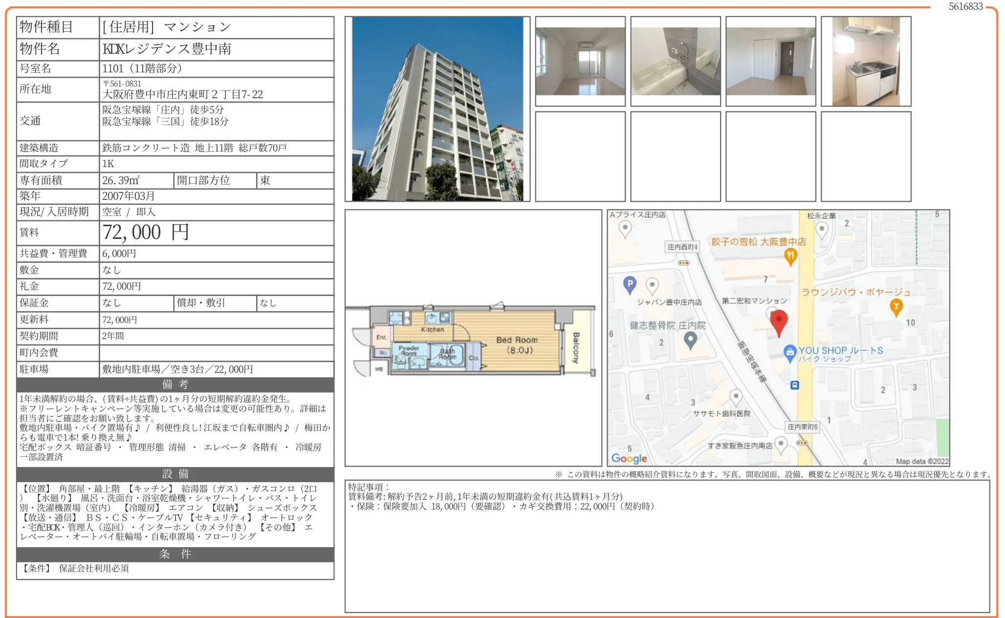 | 駐車場月額 | 22,000円 |
