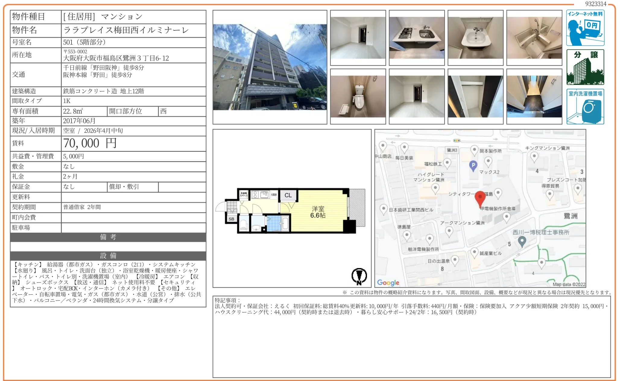 | 物件名 | ララプレイス梅田西イルミナーレ 501 |