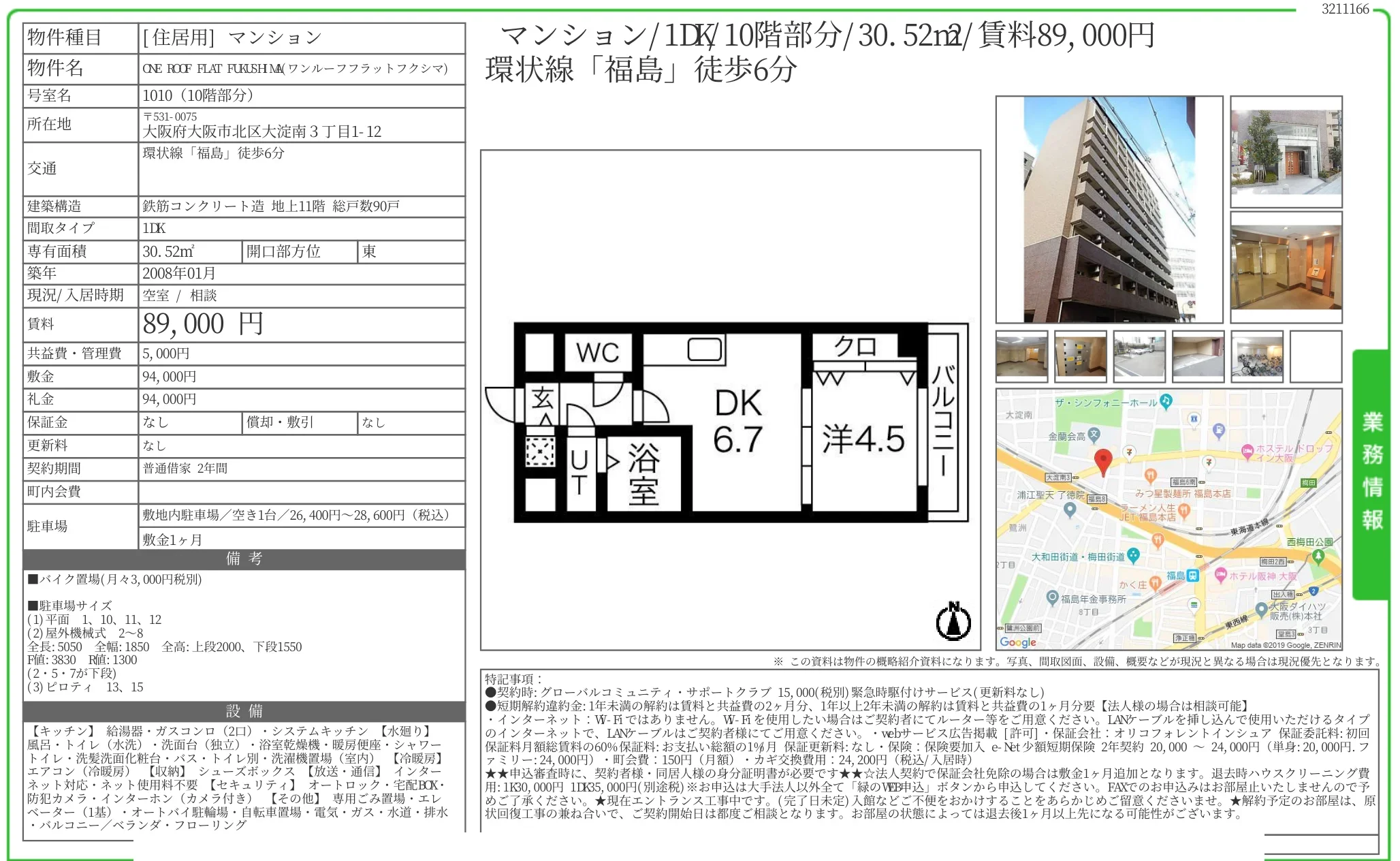 | 物件名 | ワンルーフフラットフクシマ 1010号 |