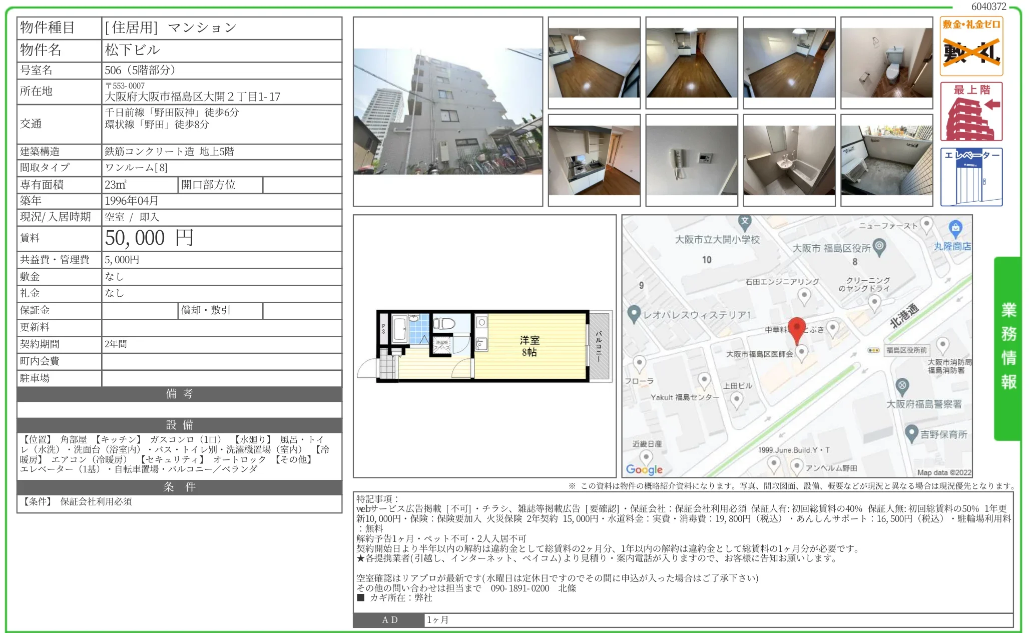 | 所在地 | 〒553-0007 Osaka City, Fukushima Ward, Daikai 2-1-17 |