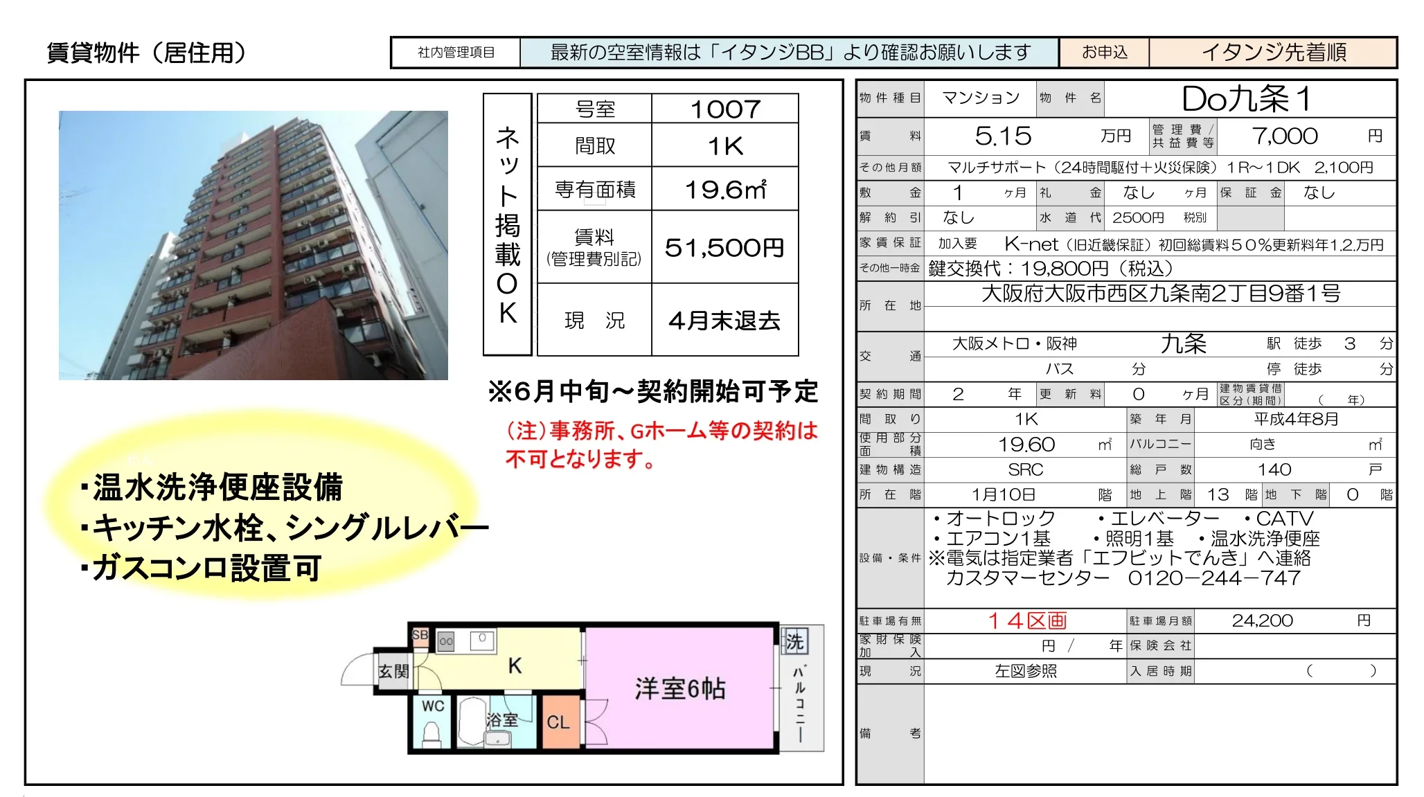 | 部屋番号 | 1007号 |