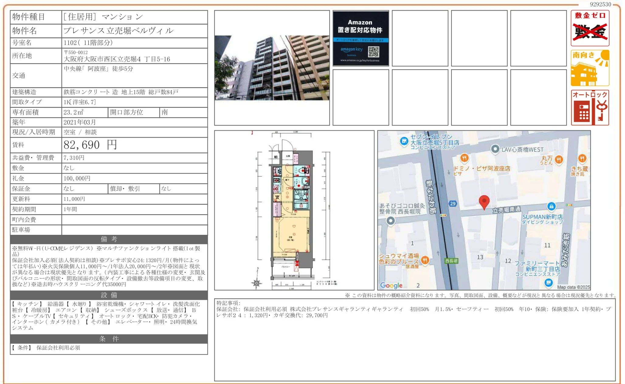 | 物件名 | プレサンス立売堀ベルヴィル 1102 |