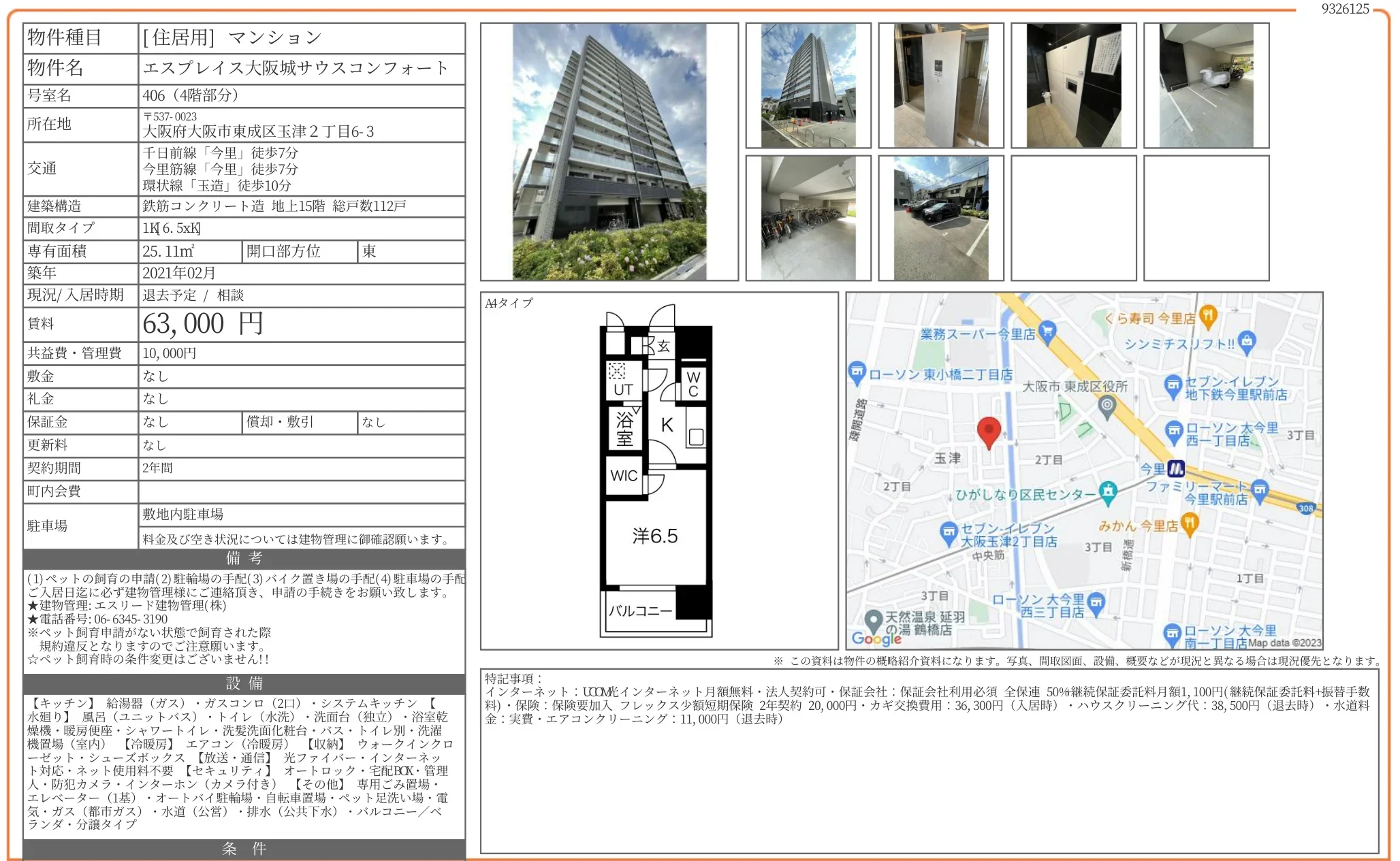 | 物件名 | エスプレイス大阪城サウスコンフォート 406 |