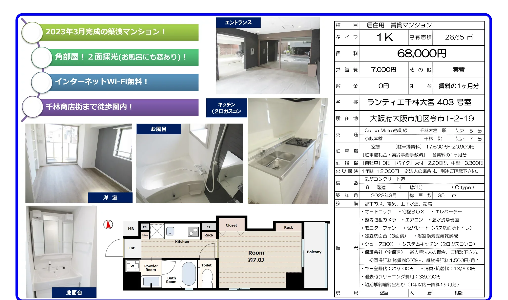 | 物件名 | ランティエ千林大宮403号室 403号 |