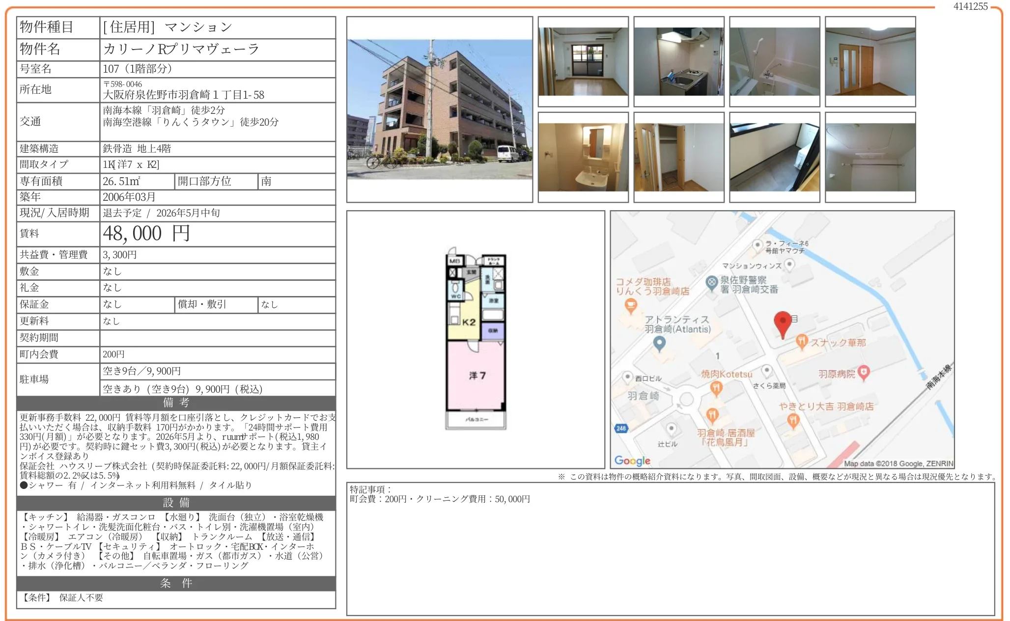 | アクセス | 羽倉崎 (徒歩2分) りんくうタウン (徒歩20分) |