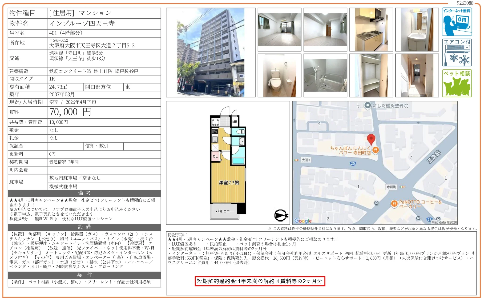 | アクセス | 寺田町 (徒歩5分) 天王寺 (徒歩13分) |