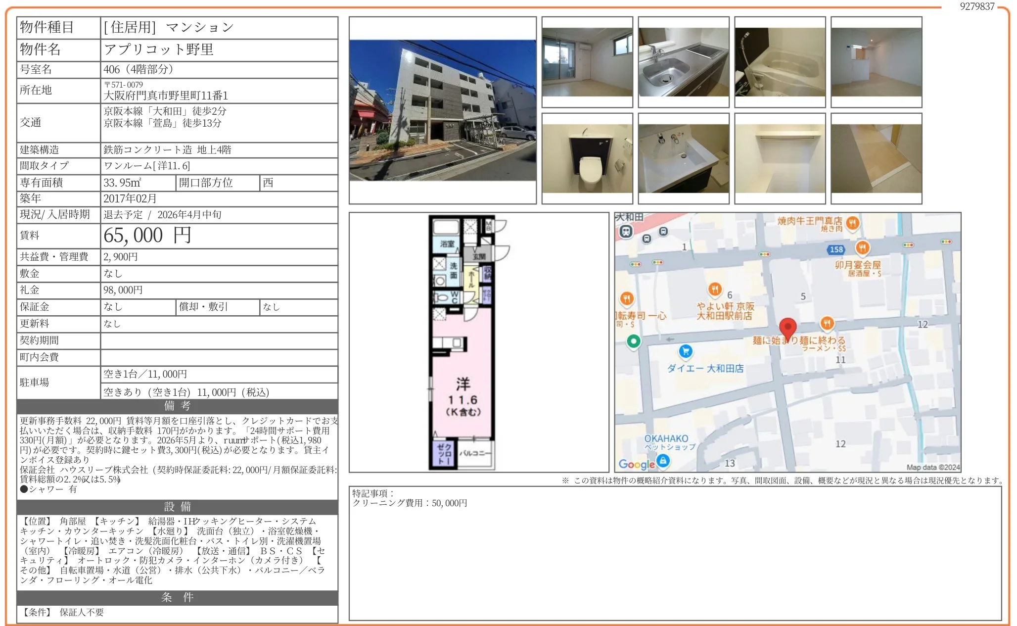 | 礼金 | 98000 |