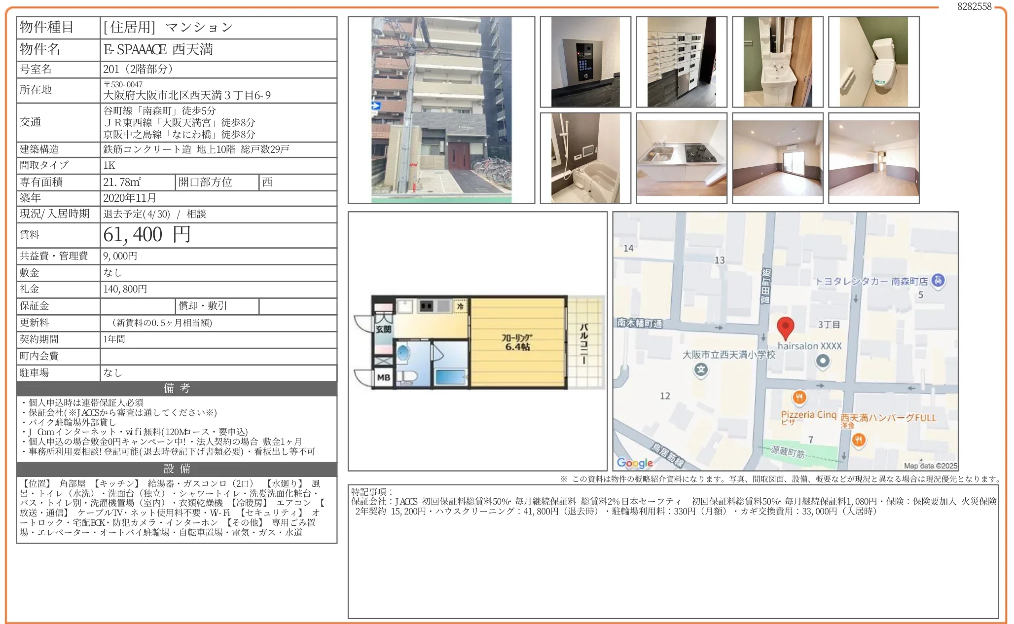 | 物件名 | E-SPAAACE 西天満 201号 |