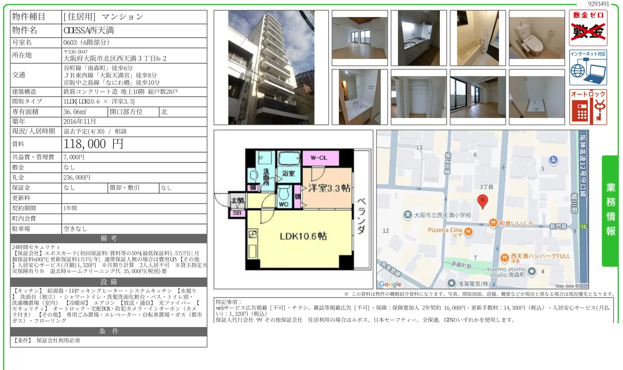 | 物件名 | ODESSA西天満 6階部分 0603 |