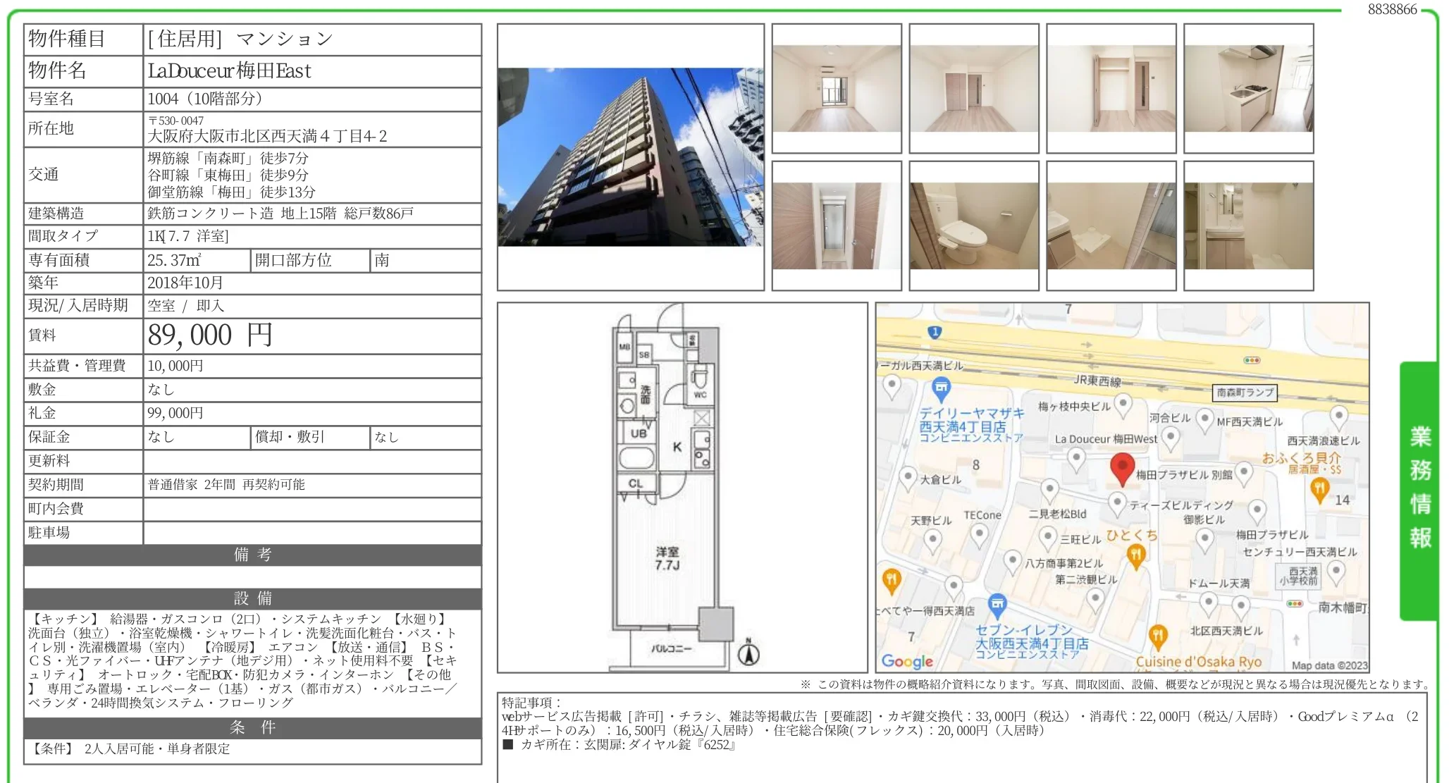 | 物件名 | LaDouceur 梅田Fast 1004 |